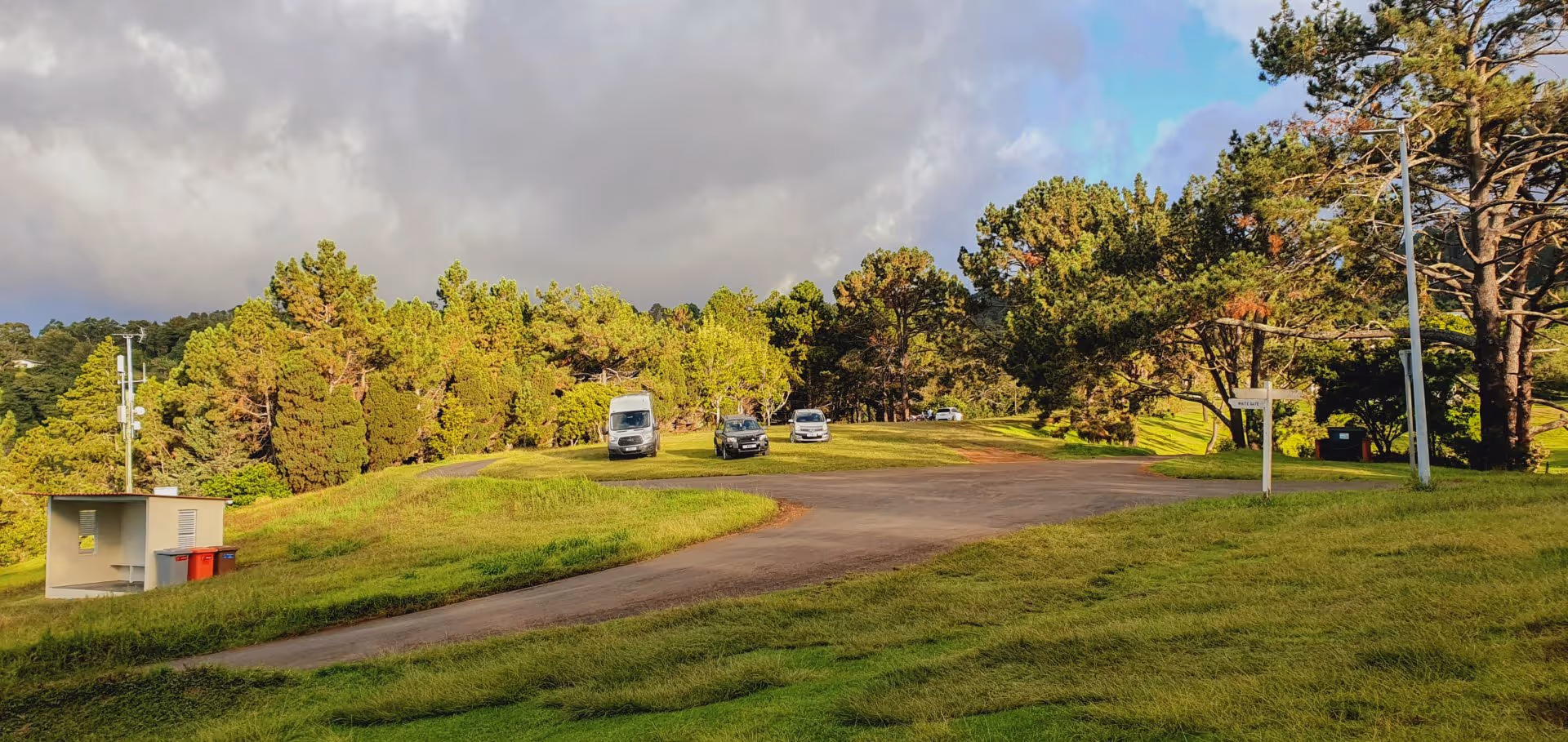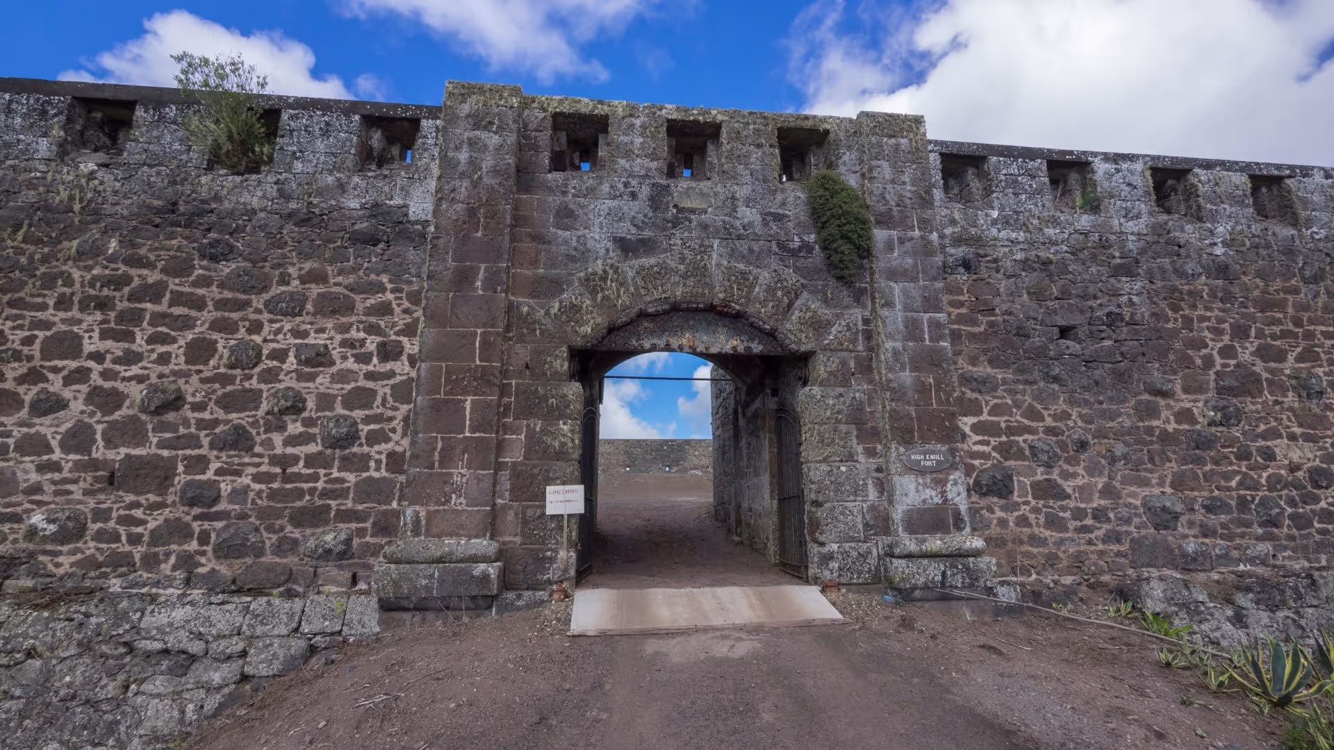 Um 14:30 Uhr sind wir zurück. Da das High Knoll Fort nicht Bestandteil der Tour war und alle anderen es schon besichtigt haben, nutzen Lara und ich den freien Nachmittag und fahren zu zweit dahin. Das Fort liegt südlich von Jamestown 600 m über dem Meeresspiegel. In seiner heutigen Form wurde es 1874 erbaut, integriert aber ein früheres Fort, das um 1790 an gleicher Stelle errichtet worden war. Seit 2015 ist die unter Denkmalschutz stehende Festung für Touristen geöffnet. Netterweise hat die Denkmalschutzbehörde auch Picknicktische aufgestellt, für diejenigen, die länger verweilen wollen. Das wollen wir nicht, sondern belassen es bei einer halben Stunde, die reicht, um einen Blick in alle dunklen Gänge und Kammern zu werfen und den Ausblick auf die umliegenden Hügel zu genießen.