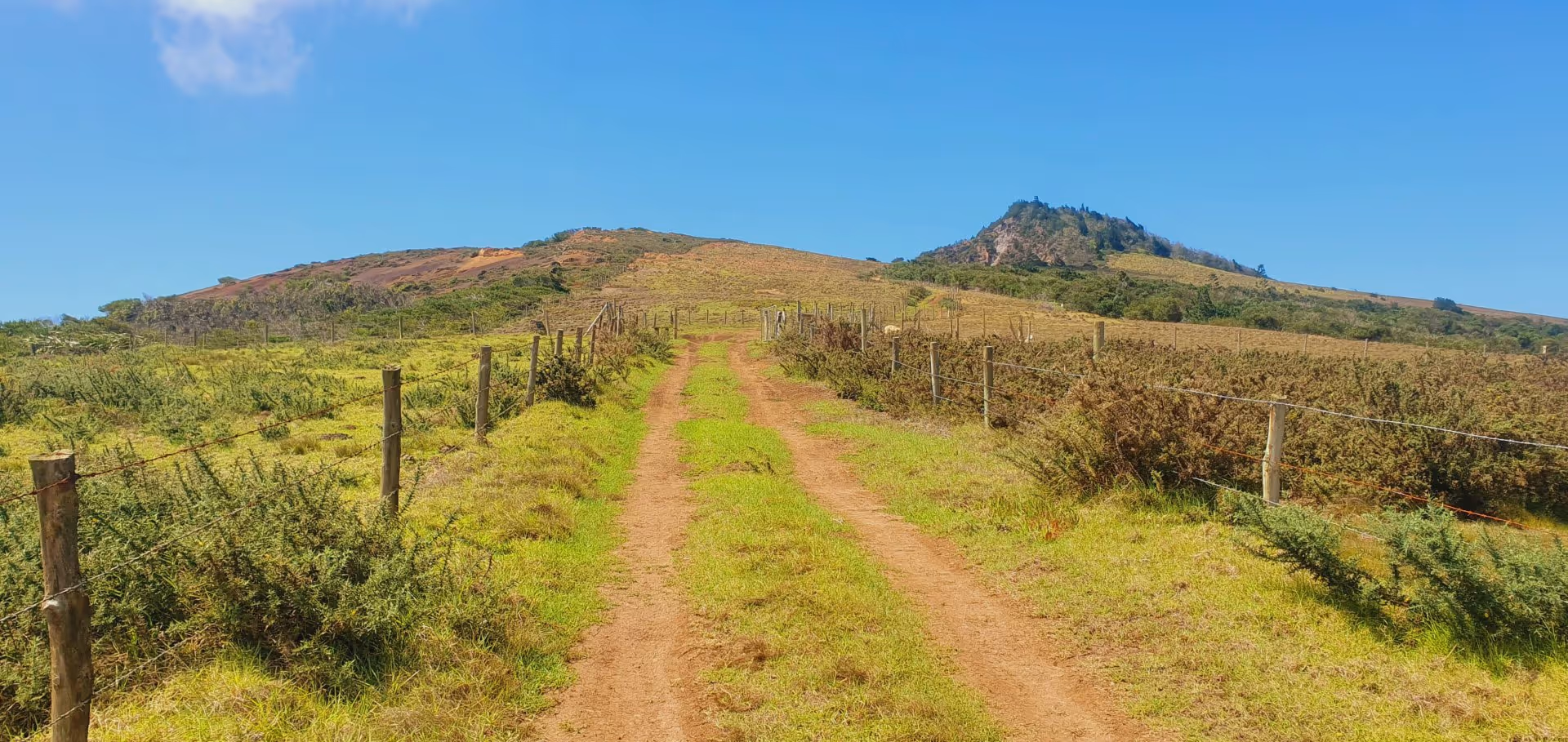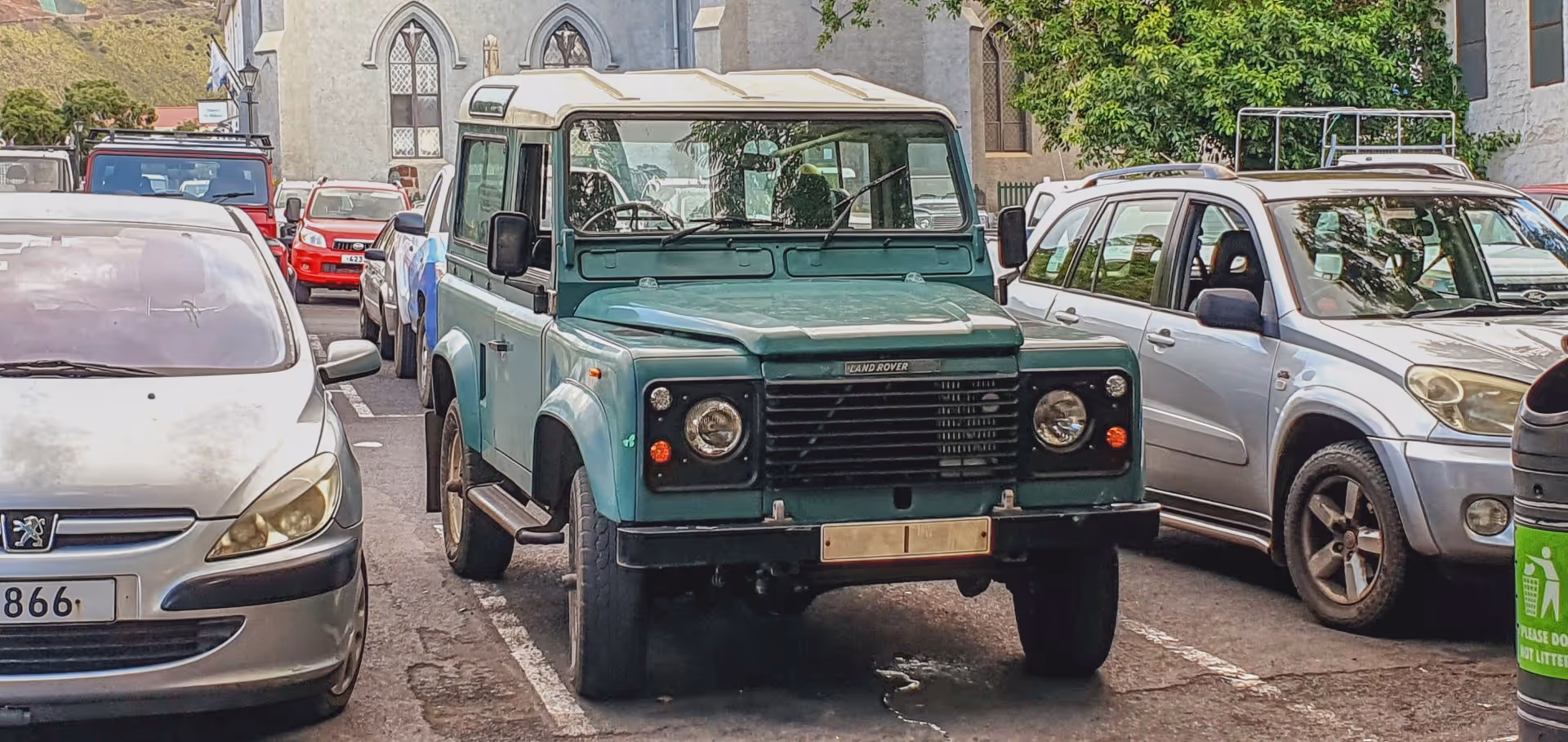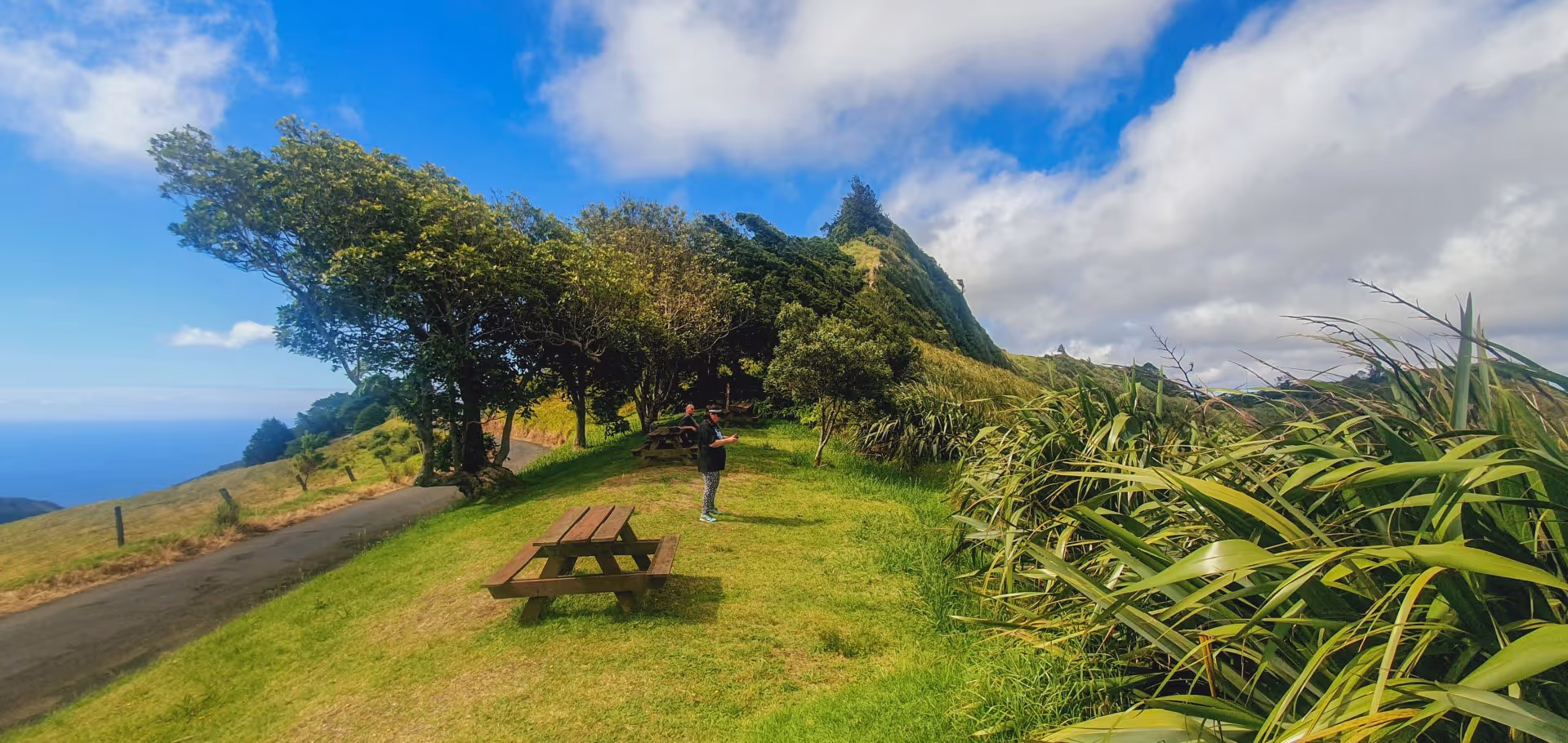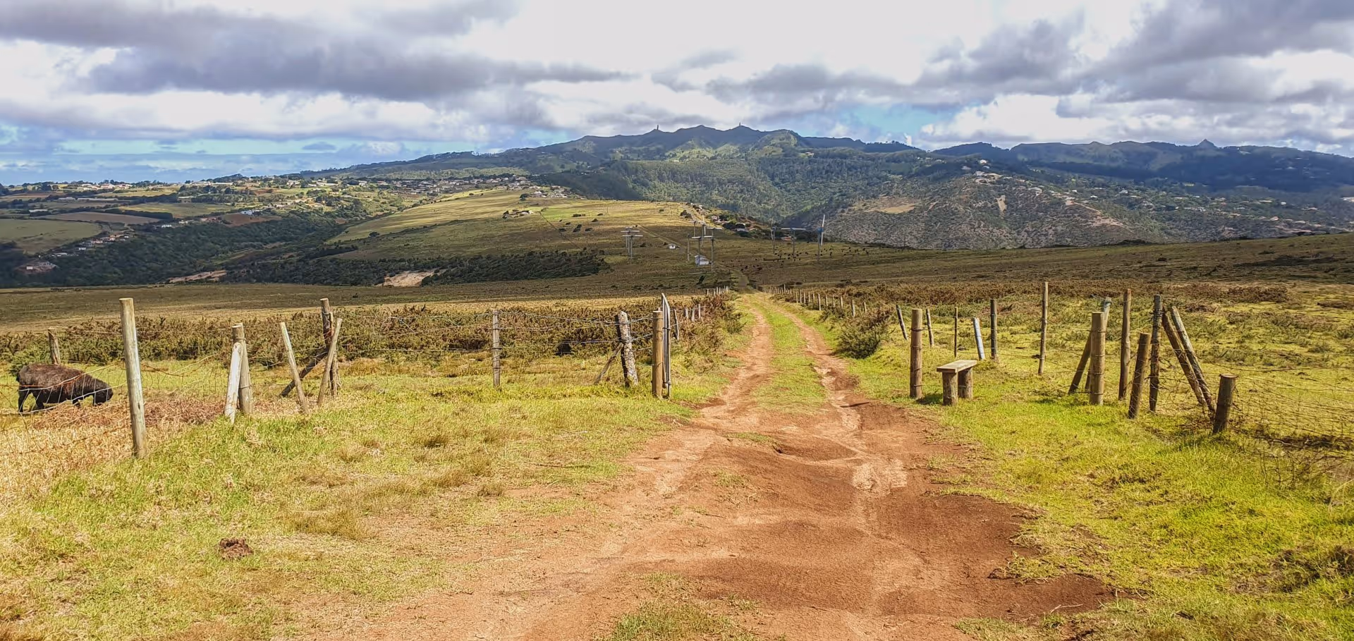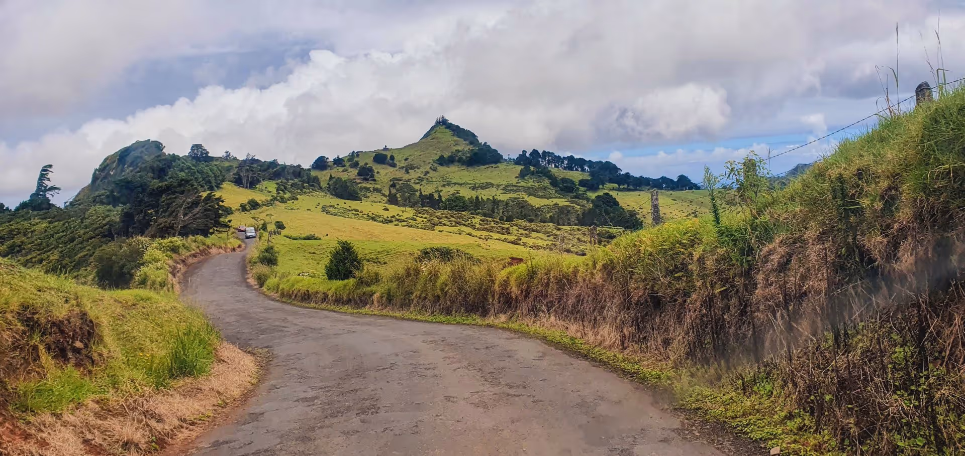 Nach einer kurzen Mittagspause machen wir uns zu viert mit dem Wagen auf, um die kurze Wanderung zum Blue Point im Süden St. Helenas in Angriff zu nehmen. Über die Ladder Hill Street und einen Sightseeing Stop am High Peak erreichen wir nach 45 Minuten den Start des Wanderwegs. Keith hat uns noch gewarnt, Schotterpisten zu meiden, da die spitzen Steine sehr gut dazu geeignet sind, einen Reifen zu plätten, aber wir wollen nicht hören und unbedingt die ersten 300 m Fußweg über die wenig einladende Schotterpiste sparen, obwohl man die eh nur in Schrittgeschwindigkeit fahren kann. Schlechte Idee. Als wir kurz darauf den Wagen am Wegesrand parken, sieht der linke Vorderreifen schon ziemlich platt aus. Ein wenig Luft ist aber noch drin, weswegen wir einen schleichenden Plattfuß vermuten. Schweren Herzens canceln wir die Wanderung und machen uns auf den Weg zur nächsten Tankstelle. Davon gibt es auf St. Helena drei: Die nächste ist in Half Tree Hollow, was bedeutet: fast den ganzen Weg zurück, womit die Wanderung dann auch komplett gestorben ist.