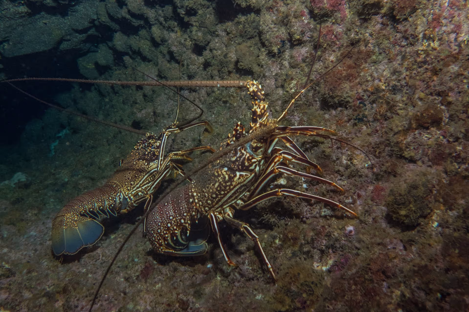 Gelegenheit zum Lockern der Beine bietet der Nachttauchgang an der Papanui. Wie erwartet, sind des Nachts ein paar andere Tiere unterwegs als tagsüber. Viele Muränen sind auf Jagd und schwimmen frei herum. Kleine Skorpionsfische erstrahlen überall in grellem Rot im Licht der Lampe. Langusten krabbeln über den Sand, gefolgt von einigen Bärenkrebsen. Wir sind schon fast unfallfrei zurück, als eine herumschwimmende Grüne Kröte vor uns Reißaus nimmt und – vermutlich irritiert von unseren Lampen – mit Vollkaracho in mich reinbrettert. Merke: Krötenschnäbel sind hart, das gibt einen schönen blauen Fleck auf der Brust! Ihr ist zum Glück nichts passiert, ich sehe sie noch zur Wasseroberfläche emporschwimmen. So kann ich ohne schlechtes Gewissen das wohlverdiente Abendessen bei Anne genießen.
