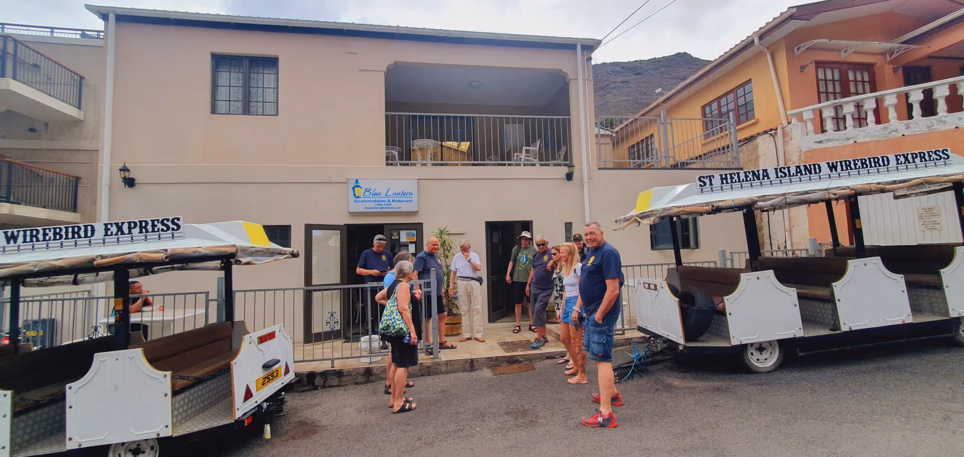 Wie auch ich, haben sich die meisten der 12 Teilnehmer (plus Waterworld-Reiseleiterin Lara) für die einfache Blue Lantern Divers Lodge entschieden, die von Keith betrieben wird und schon ein wenig Jugendherbergscharme versprüht: Die acht einfachen Zimmer sind rustikal möbliert und mit einem Deckenventilator ausgerüstet, der eigentlich im Dauerbetrieb laufen müsste, um bei dem feuchtheißen Klima auf St. Helena für eine angenehme Zimmertemperatur zu sorgen. Wohl dem, dem Zugluft beim Schlafen nichts ausmacht. Dafür punktet das Blue Lantern mit einem großen Gemeinschaftsraum, in dem man nach den Tauchgängen zusammenhocken kann, und sehr gutem Essen, das im angeschlossenen Restaurant gereicht wird. Auch WLAN steht in Form von Vouchern mit unterschiedlichen Laufzeiten gegen eine Extra-Gebühr zur Verfügung. Seit Oktober 2023 ist St. Helena über ein Glasfaserkabel ans Internet angeschlossen. Highspeed-Internet darf man zwar wegen der veralteten Infrastruktur "auf der letzten Meile" trotzdem nicht erwarten, aber zum einfachen Surfen im Netz reicht es.