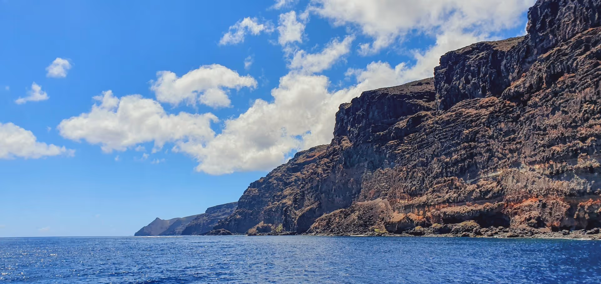 Während der Oberflächenpause bekommen wir Besuch vom größten Fisch des Planeten. Eigentlich ist jetzt die beste Zeit für Walhaisichtungen vor St. Helena, denn zwischen Dezember und März kommen sie hierher, um sich fortzupflanzen. Craig erzählt, dass sie sich letztes Jahr um die Zeit vor Walhaien kaum retten konnten, sie waren überall. Dieses Jahr ist es leider anders, aber es ist wie es ist: Wir hüpfen auch gerne zu dem einen Kollegen ins Wasser und schnorcheln mit ihm.