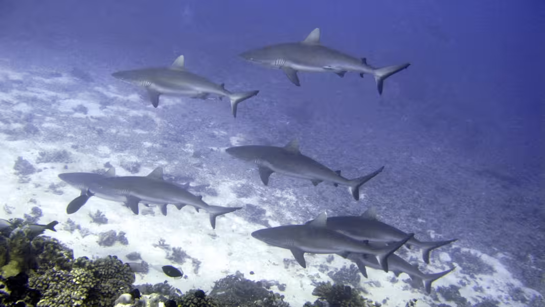 An unseren letzten beiden Tauchtagen machen wir keine Experimente mehr, bei allen vier Tauchgängen besuchen wir die Grauen Riffhaie im Kanal und freuen uns über ihr zahlreiches Erscheinen. Besonders der letzte Tag ist absolut fantastisch, statt an der Kanalwand entlang lassen wir uns mitten im Kanal treiben. Wo wir auch hinschauen sind Haie, eine gigantische Schule aus 200-300 Grauen Riffhaien, die das Galapagos-Feeling perfekt macht, schwimmt um uns herum. Das Piepen des Computers ignorieren wir dabei geflissentlich, denn das Korallenriff bietet perfekte Bedingungen für ein entspanntes, halbstündiges Austauchen im 3-6 m Bereich. Immer wieder gerne schauen wir dabei den Schwarzspitzenriffhaien zu und lichten im Freiwasser-Aquarium jeden Falterfisch ab, der es bisher noch nicht zu Pixelehren gebracht hat. Die vier Tauchtage auf Fakarava gehen jedenfalls viel zu schnell vorbei.