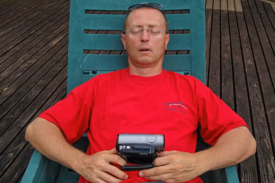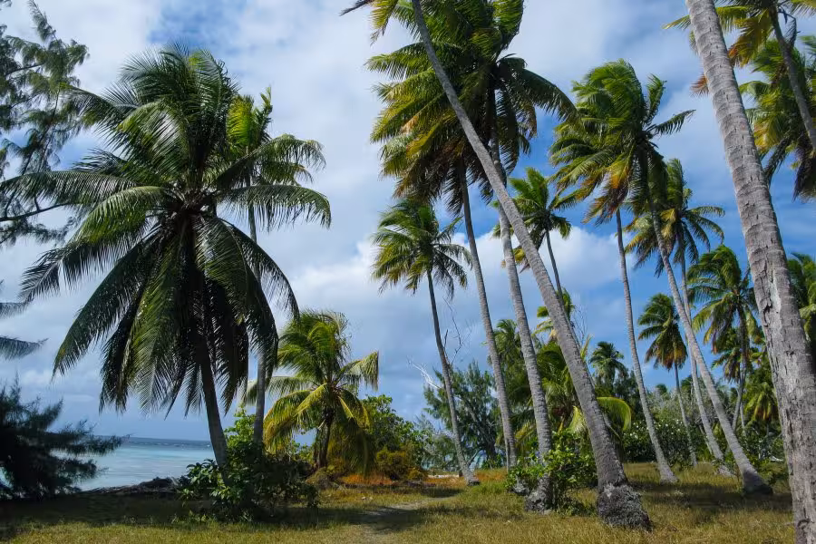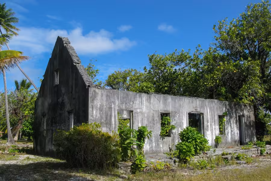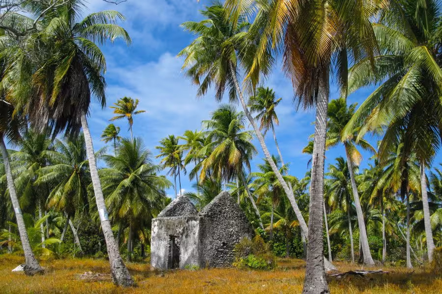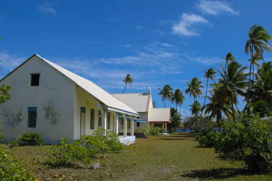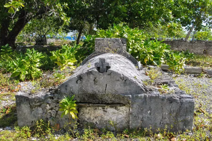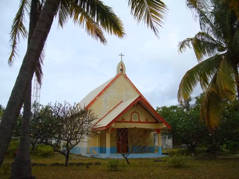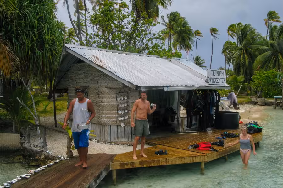 Mit nur zwei Tauchgängen am Tag bleibt nach dem Tauchen genügend Zeit für andere Aktivitäten, wie Fotos auszusortieren, auf der Terrasse die Nachmittagssonne zu genießen oder einen Inselrundgang zu unternehmen. Ein kleiner Pfad führt durch das Dickicht aus Kokospalmen. Nach handgestoppten sieben Minuten gemütlichen Spazierengehens mit Fotopausen erreicht man ein weiteres kleines Resort, das "Tetamanu Sauvage". Neben ein paar verlassenen Häusern steht noch eine Kirche mit einem kleinen Friedhof, auf dem sich genau zwei verwilderte Gräber befinden. Das war's auch schon, man muss sich ziemlich anstrengen, um für den Inselrundgang länger als 1 Stunde unterwegs zu sein.
