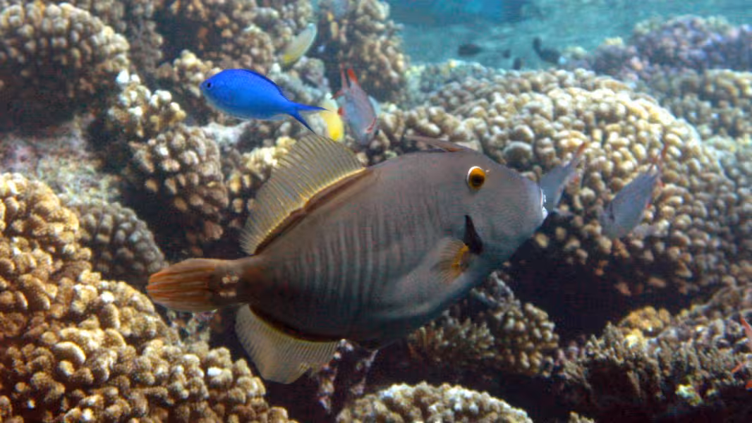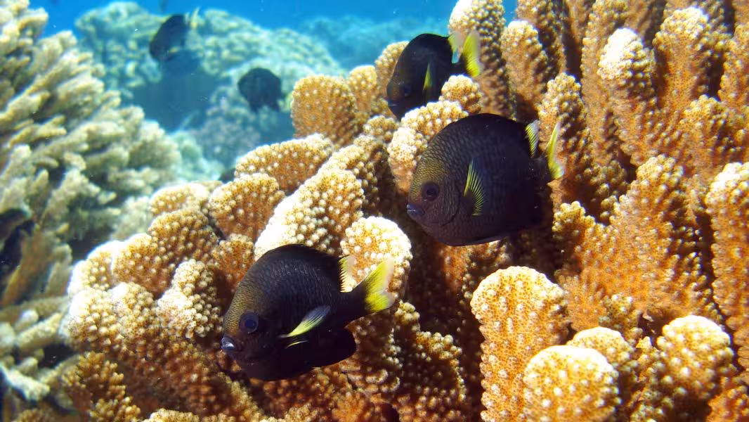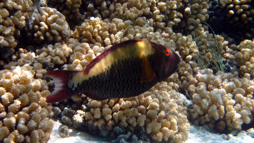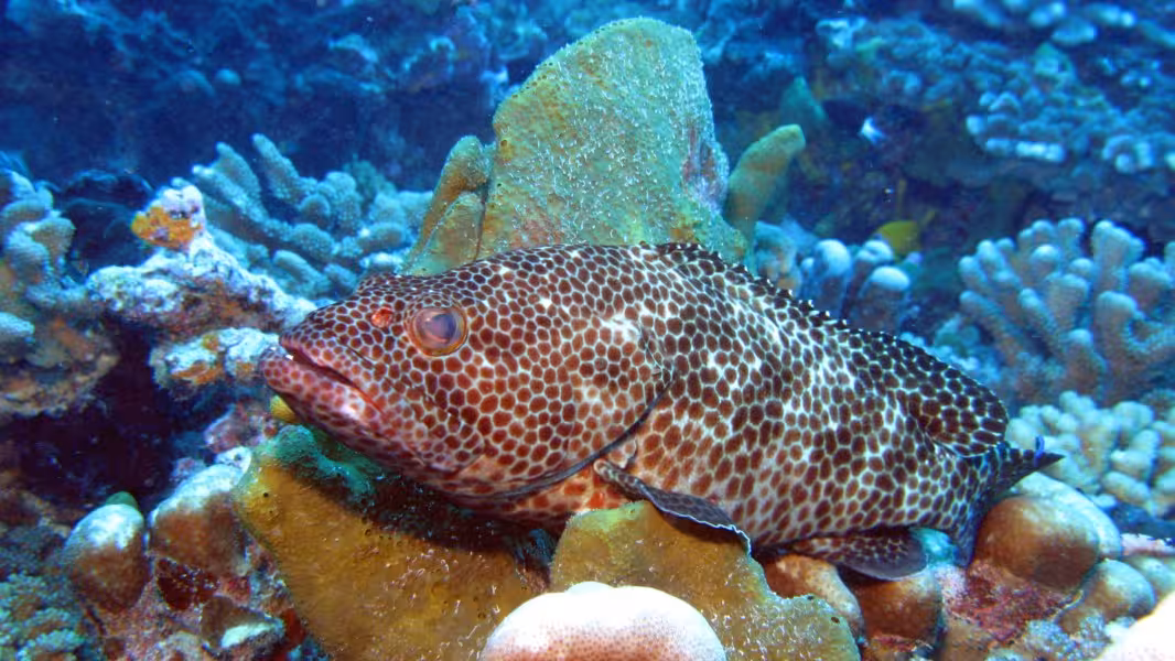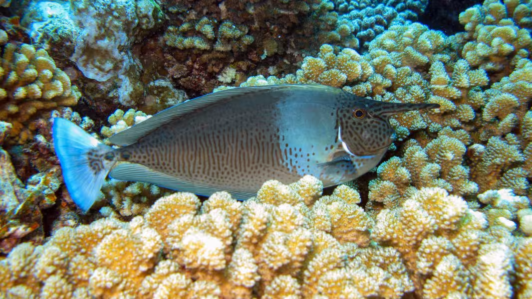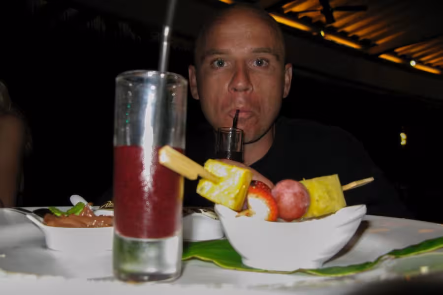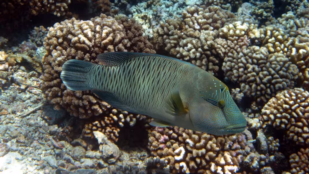 Wir schaffen es, in unser Zeitfenster noch einen dritten Tauchgang zu quetschen, aber da die Strömung schon gegen null geht, sparen wir uns die Bootsfahrt und steigen gleich an der Basis ins Wasser. Bei unserer Runde durch den Kanal lichten wir jeden Fisch ab, der sich nicht rechtzeitig hinter die nächste Koralle retten kann und treffen auch wieder auf viele graue, schwarze und weiße Riffhaie und zu unserer Verzückung auch auf einige Adlerrochen. Einer von ihnen ist schwanzlos, Ursache wird aber wohl weniger ein Gendefekt sein als vielmehr eine Auseinandersetzung mit einem Raubfisch, aus der der Rochen als Verlierer hervorgegangen ist. Na immerhin ist er am Leben geblieben, so gesehen darf er es wohl als Sieg für sich verbuchen. Wir fühlen uns auch als Sieger und lassen den ersten Tauchtag bei einem leckeren Abendessen ausklingen. Die Verpflegung im Tetamanu Village ist wirklich gut, sieht man vielleicht mal vom gewöhnungsbedürftigen Frühstück ab, welches ich ohne mein mitgebrachtes Nutella nur schwer überlebt hätte. Mittags und abends gibt's dafür leckere warme Mahlzeiten mit viel frischem Fisch, Gemüse und Reis. Und natürlich ein bis zwei Hinano dazu.