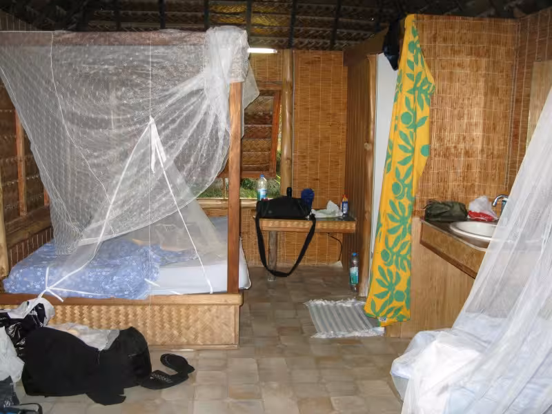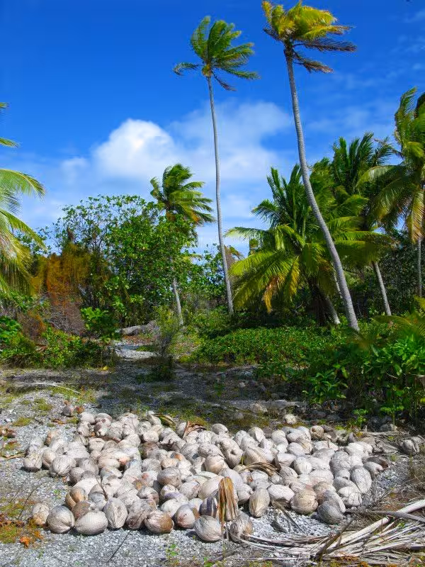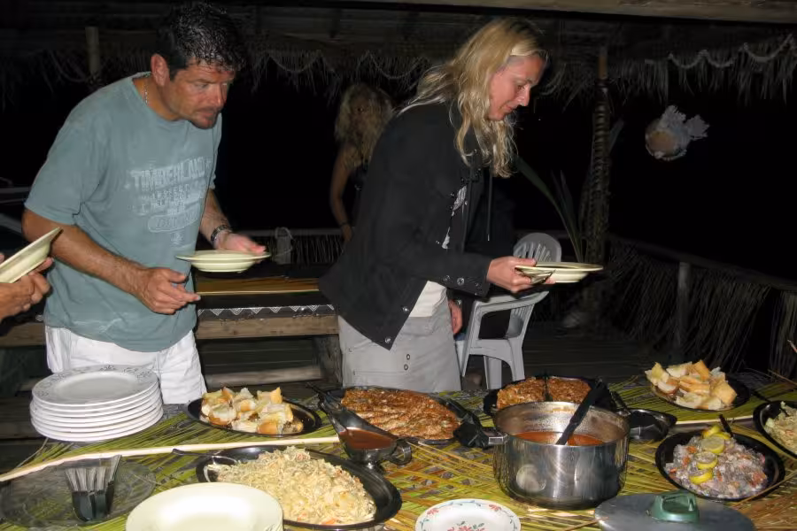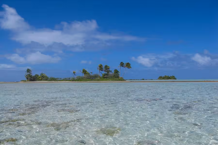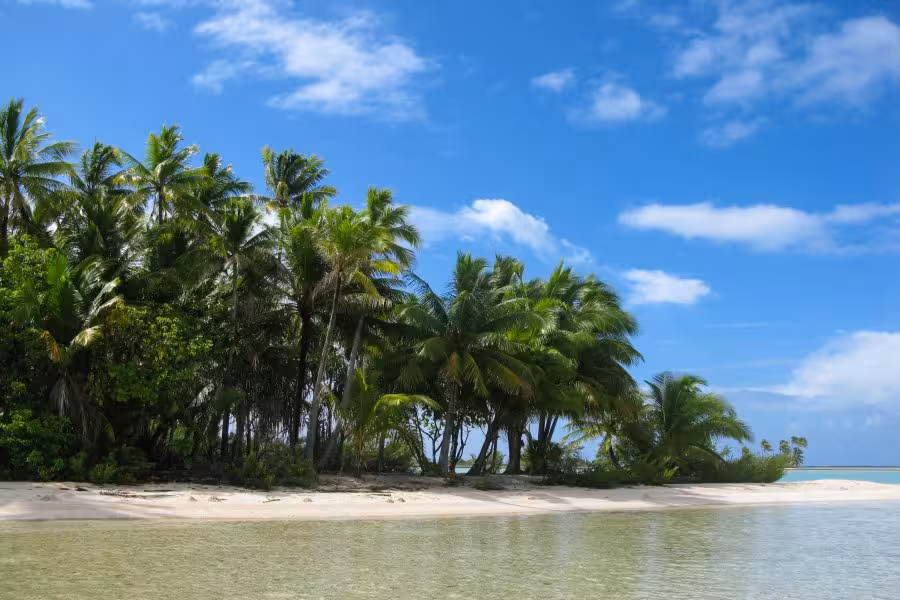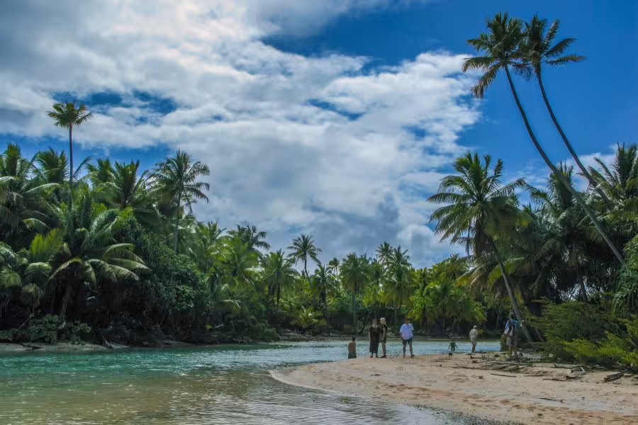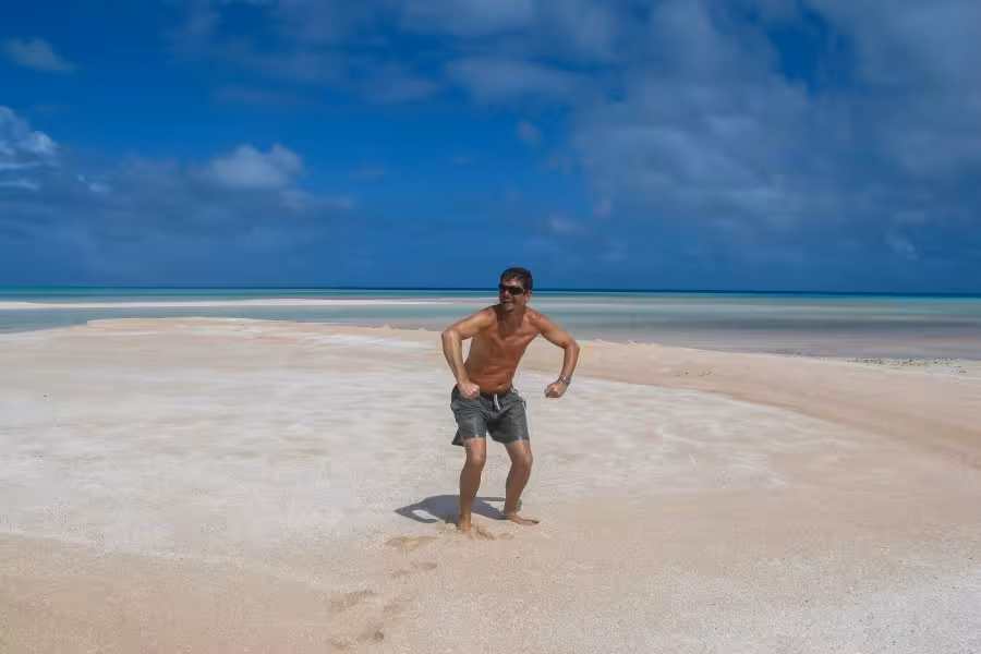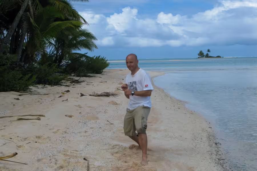 Zum Abschluss unseres Aufenthaltes hält Sanny noch ein Schmankerl für uns parat. Er setzt uns zu einer absolut unberührten Nachbarinsel über, wo wir bei einem zweistündigen Spaziergang über die palmenbewachsenen Sandstrände und beim Waten durch kristallklares Lagunenwasser nochmal richtig Südseeflair genießen können.