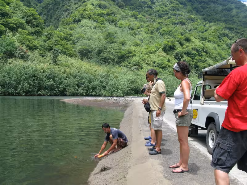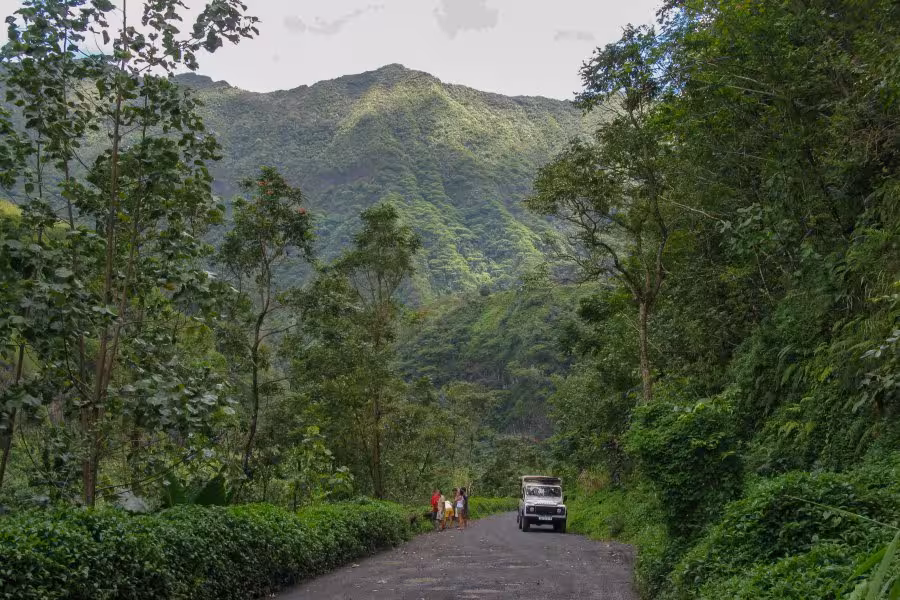 Der letzte Tag in Polynesien wird individuell verschieden gestaltet. Während eine kleine Splittergruppe nochmal schnell nach Moorea übersetzt, um den Buckelwalen einen letzten Besuch abzustatten, begebe ich mich mit fünf Kollegen per Jeep auf eine "Inner Island"-Erkundungstour. Die Exkursion ins Gebirge entlang des Mont Orohena ist sehr lohnenswert und macht einen Heidenspaß. Den ganzen Tag sind wir auf schmalen Gebirgsstraßen unterwegs, baden im glasklaren Wasser des Papenoo-Flusses, begutachten antike Tempel und weniger antike Wasserfälle und genießen die Ausblicke auf die mit Regenwald bewachsenen, steilen Berghänge. Hier die Bravo-Fotostory: