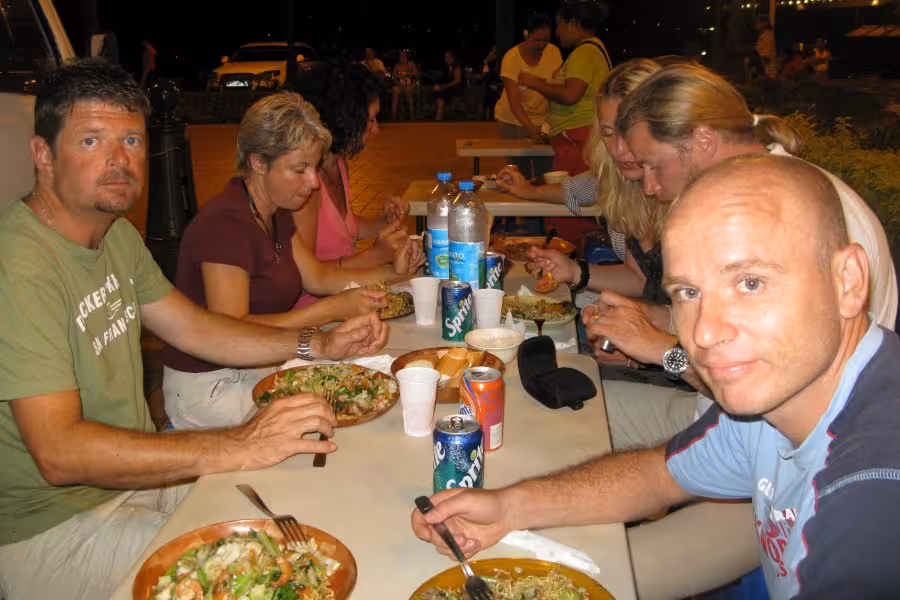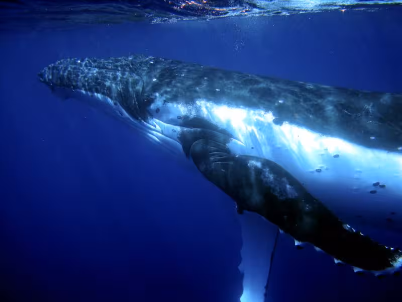 Nach gut 9 Stunden sind wir zurück und treffen die Splittergruppe an, die ebenfalls sehr happy ist: Eine volle Stunde Schnorcheln mit drei Buckelwalen, die von einer Gruppe Pilotwale begleitet werden, hätten mich sicher auch glücklich gemacht ...