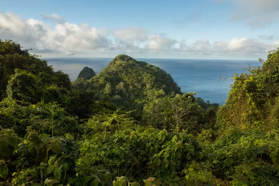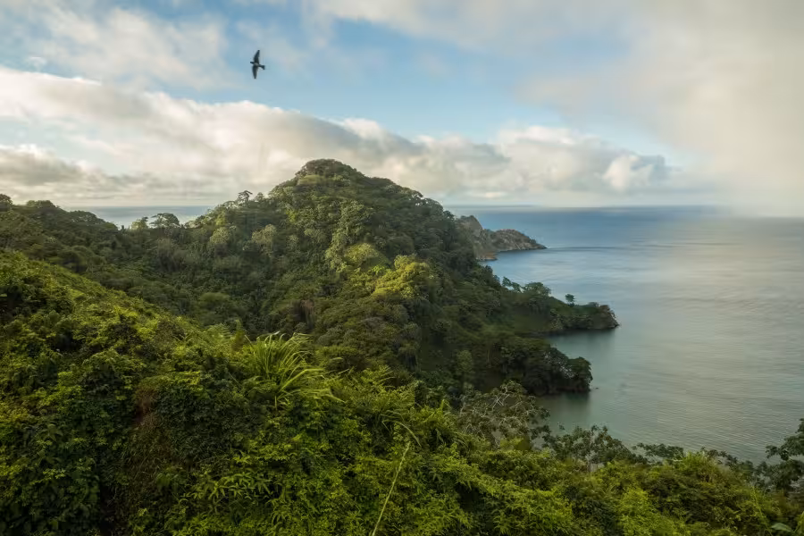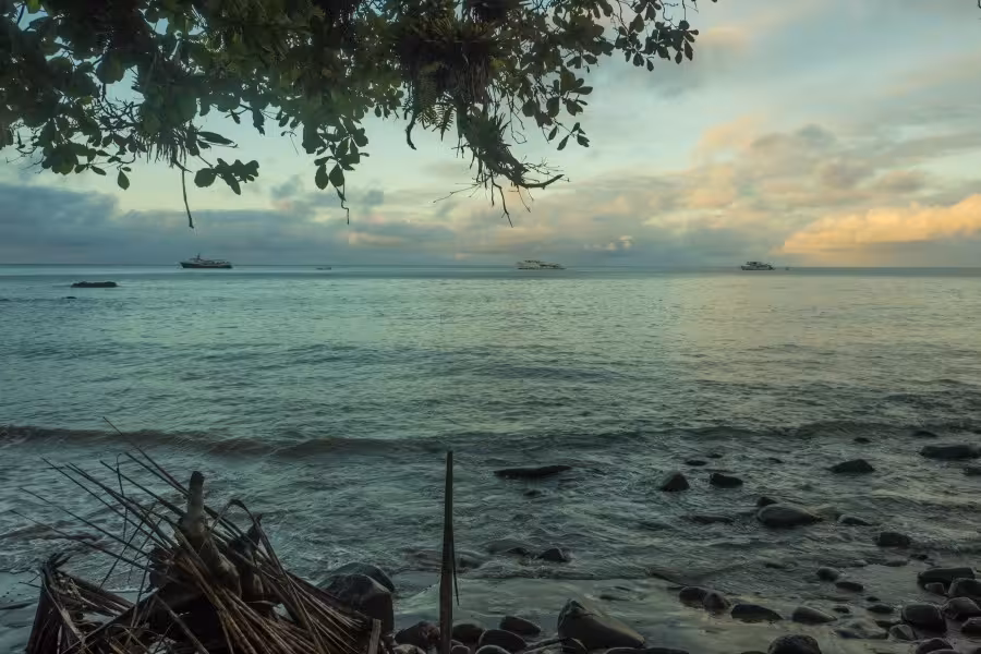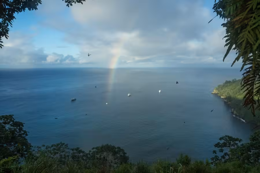 Der GPS-Tracker war nicht defekt, im Morgengrauen lugt Cocos immer mal wieder zwischen Nebel, Wolken und Regen hervor, bis wir um 10 Uhr endlich vor Manuelita, einer kleinen vorgelagerten Insel, die durch einen schmalen Kanal von Cocos getrennt ist, ankern. Nachdem die Formalitäten mit den Park Rangern erledigt sind, geht es endlich los mit der Erkundung der Tauchplätze rund um Cocos Island.