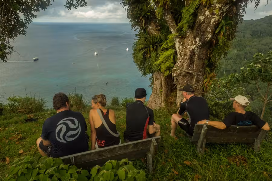 Am Nachmittag tauschen wir die Flossen gegen Turnschuhe. Für einen kleinen Inselspaziergang fahren wir in die Wafer Bay und besichtigen zunächst die dortige Ranger Station, an der auch einige Biologie-Studenten aus Kolumbien ihre Forschungen betreiben. Da der Trail zu dem Wasserfall, den wir vor 7 Jahren besucht haben, wegen Erdrutschen gesperrt ist, führt uns unser Weg über einen steilen Pfad durch den Regenwald in die Chatham Bay – eine sehr schweißtreibende aber lohnenswerte Angelegenheit. Ein Ranger begleitet uns und erklärt uns auf der dreistündigen Tour allerhand über die Geschichte, Flora und Fauna der Kokos-Insel. Nicht, dass ich davon furchtbar viel behalten hätte ...