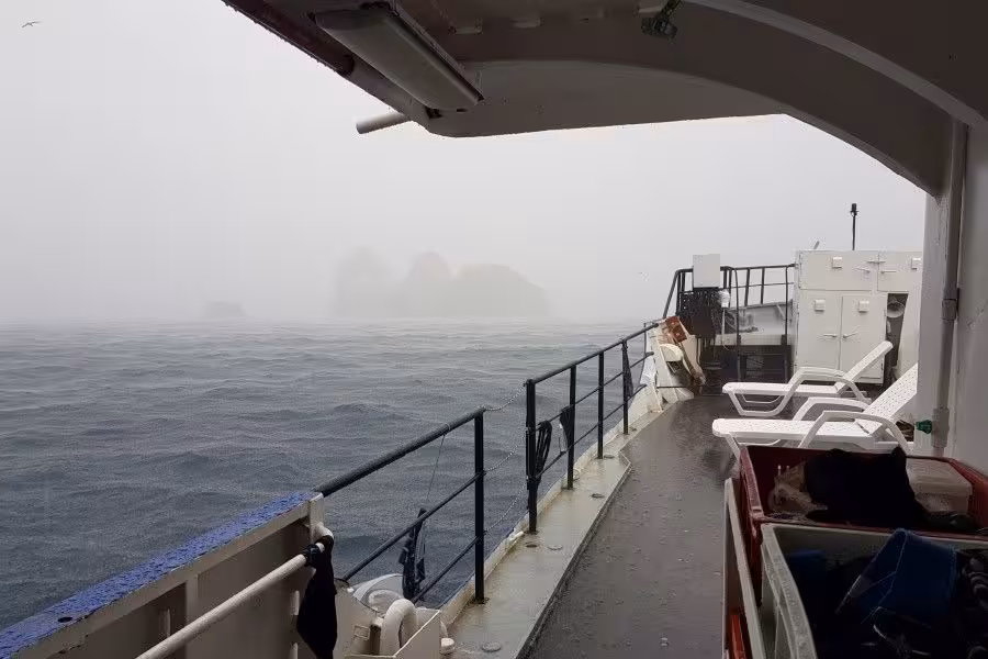 Nicht begeistert war ich auch von der Sauberkeit, die wir auf dem Schiff beim Einchecken vorgefunden haben. Die Schubladen mussten wir erstmal feucht durchwischen, bevor wir unsere Klamotten darin verstauen konnten. Auch die Decks scheinen seit langer Zeit keinen Eimer Wasser mehr gesehen zu haben. Badeschuhe einpacken oder mit schwarzen Füßen ins Bett gehen! Oder natürlich vorher Füße waschen. Man darf aber hoffen, dass sich der Betreiber entsprechendes Feedback für die Zukunft zu Herzen nimmt.
