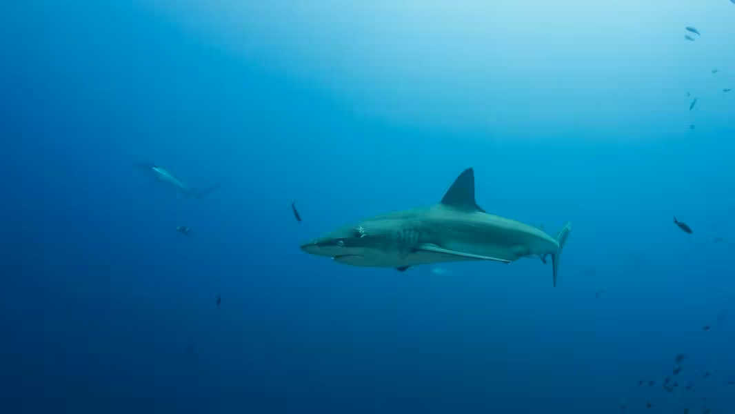 Die üblichen Verdächtigen dann an La Nevera — und die Silkies zieren sich weiter. Gut für Silkies war in der Vergangheit auch das Aquarium, ein Unterwasserberg südwestlich von D'Artagnan. Bei starker Strömung geht es an der Abstiegsleine, die Michael und Jaime extra gestern Abend noch installiert haben, abwärts. Mit nur einer freien Hand ist es gar nicht so einfach, auf dem Felsen einen sicheren Halt zu finden, um das Treiben an der Putzerstation zu beobachten. Das nimmt sich allerdings überschaubar aus, die Dienste der putzenden, respektive putzigen, Falterfische nehmen heute nur ein paar stattliche Bernsteinmakrelen in Anspruch. Haie Fehlanzeige. Nach 20 min lassen wir los und driften durchs Blaue gen Panama. Auf unserem Weg begegnet uns eine große Schule Gelbflossenthune, die uns minutenlang umkreisen und die Mullet Snapper, die eigentlich an Aramis stehen sollten. Nach 20 min Drift tauchen wir auf und stellen fest, dass es wahrscheinlich genau diese Schule war, denn wir kommen weit, weit nördlich der 3 Musketiere wieder an die Oberfläche. Das Skiff wartet schon, aber Robert, unser Fahrer, muss sich noch etwas gedulden, denn 2 Seidenhaie unterm Boot verlangen nach unserer vollen Aufmerksamkeit. Fehlen nur noch ihre 98 Freunde ...