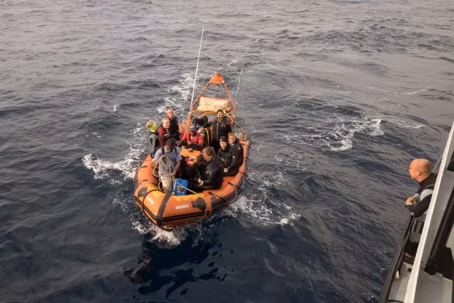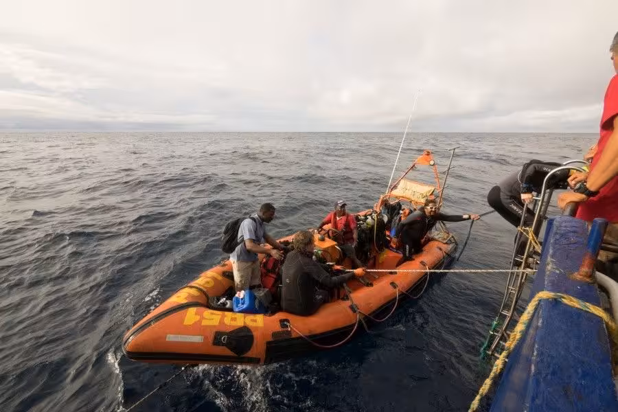 Direkt nach dem Tauchgang werden die 3 Skiffs eingesammelt, ein paar Lebewohl-Fotos geschossen und ab geht die Fahrt gen Osten! Zeit, das Foto- und Videomaterial zu sichten, das auch diesmal wieder die ein oder andere schöne Szene hergibt: