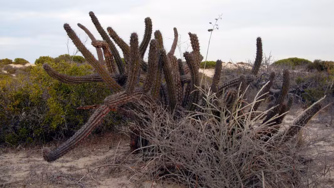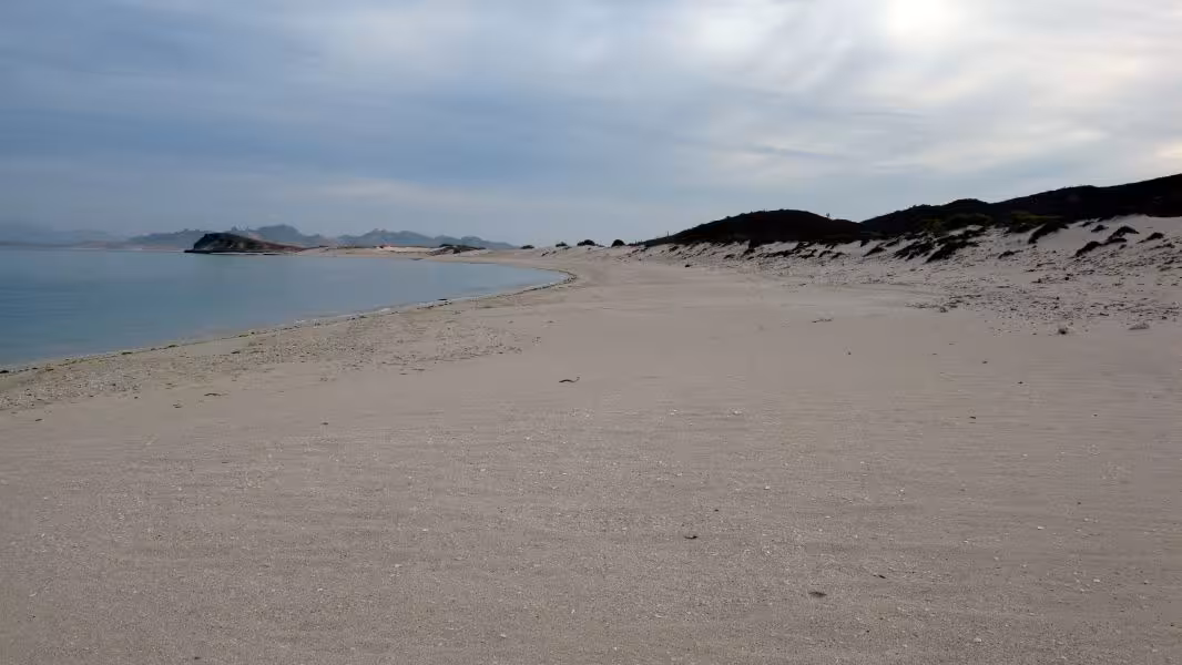 Am Nachmittag ist Landgang angesagt, Sten, schwedischer Cheftauchguide auf der Nautilus Explorer und Hüne von einem Wikinger, spricht von einem einstündigen "Strandspaziergang". Der weiße Sand sieht auch sehr verlockend aus, dementsprechend mache ich mich barfuß auf die Socken, sofern man das so sagen kann. Was Sten nicht verraten hat: Der Spaziergang findet eigentlich HINTER dem Strand statt. Dort wartet eine steppenartige, mit allen Arten von Kakteen bewachsene Landschaft. Der Boden ist übersät mit kleinen, dornigen Kügelchen, die sich bei jedem Schritt schön an die Fußsohlen des Wanderers heften. Etwas slapstickartig tippele ich so auf Zehenspitzen durch die Gegend, bis es mir reicht, ich mich lieber an den Strand lege und dem Kolibri zuschaue, der hektisch von einer Blume zur anderen schwirrt, bis der tolle Sonnenuntergang unseren kleinen Ausflug beendet.