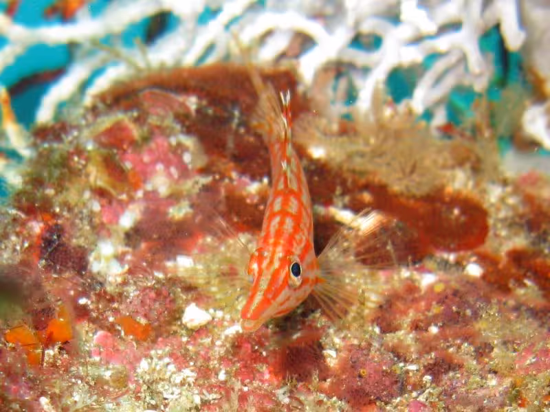 Nach unseren beiden vormittäglichen Tauchgängen geht die Fahrt weiter Richtung Norden, bis wir am Nachmittag ein kleines Riff erreichen, das auf den Namen Suavee hört. Es ist der einzige Tauchplatz weit und breit, nur 100 m lang, vielleicht 30 m breit und reicht bis auf eine Tiefe von 5 m unter die Wasseroberfläche. Beim Sprung ins Wasser muss ich mir erstmal die Maske wischen, ist die beschlagen oder die Sicht doch so bescheiden? Tatsächlich ist das Wasser sehr milchig, viel mehr als 5-10 m Sicht dürfte es nicht haben. Auch die 18 Grad Wassertemperatur sorgen nicht für Wohlbehagen, ich bin halt doch nur ein Tropentaucher. Dafür gibt es an diesem Riff neben kiloweise Algengestrüpp stellenweise tatsächlich ganz schöne Korallen und auch einen Ansatz von Schwarmfisch, wenn ich mehr als 2 Fische auf einem Haufen als "Schwarm" betrachte. So wird es ein entspannter Nachmittagstauchgang. Damit ist es dann aber auch genug hier.