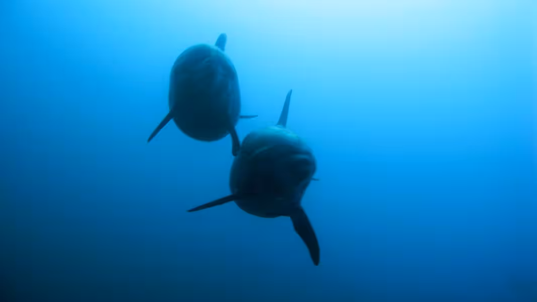 Leider erfüllt sich meine Hoffnung auf Haiflossen aber auch beim dritten Abstieg nicht. Dafür vernehme ich nach 30 Minuten Tauchzeit ein wohlbekanntes Pfeifen und Quietschen in den Ohren. Nein, es ist nicht der Tinnitus. Vielmehr beschließt eine Gruppe Tümmler, die außeraquatischen Lebensformen, die sich in ihrem Revier rumtreiben, genauer unter die Lupe zu nehmen. Sofort schalte ich auf Kasperlemodus, denn Delfine sind wie kleine Kinder: Man muss sie unterhalten, wenn sie anfangen sich zu langweilen, verschwinden sie sofort. So drehe ich einige Schrauben und Salti, bis die Pumpe mich daran erinnert, dass ich seit St. Wendel kaum noch trainiert habe. Trotzdem bleiben die Flippers ein paar Minuten bei uns und machen diesen Tauchgang zu einem echten Highlight.