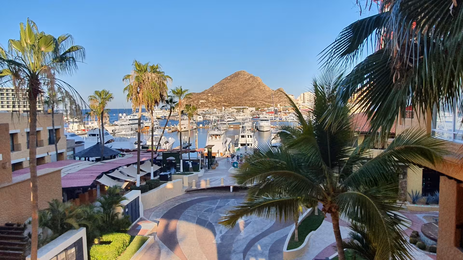 Nach vier Stunden Aufenthalt auf dem quirligen Flughafen von Mexico City, der einen glauben lassen könnte, dass es keine Pandemie gibt, geht es schließlich auf die letzte Etappe nach San José del Cabo, wo wir nach insgesamt 23 Stunden on tour landen. Der Shuttle-Bus zum direkt am Yachthafen von Cabo San Lucas gelegenen Hotel Tesoro dauert nochmal eine halbe Stunde, dann haben wir endlich unser Ziel erreicht.
