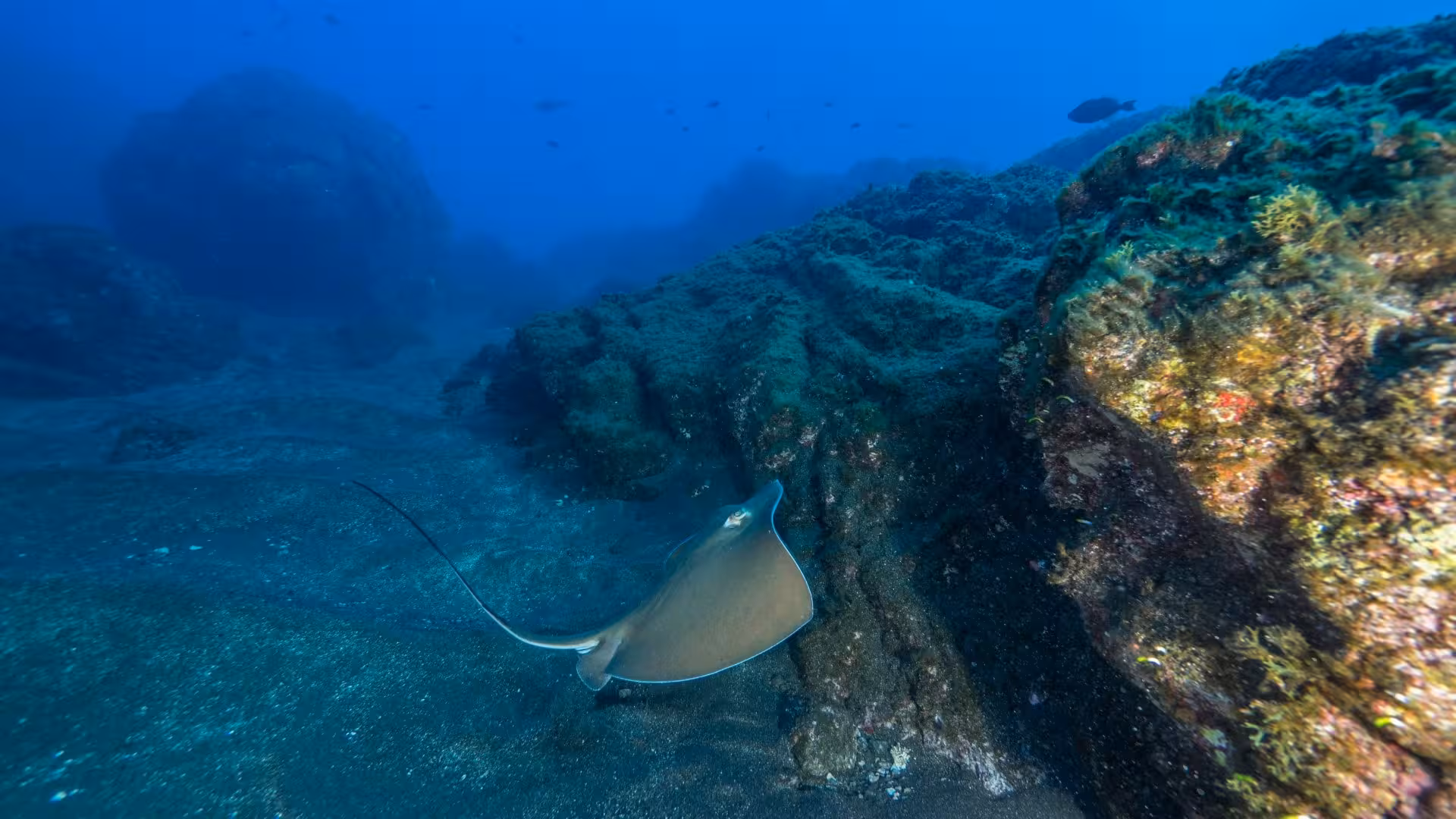 119 Stunden nach dem Abflug in Düsseldorf geht es heute endlich zum ersten Mal ernsthaft ins Wasser. Der Platz heißt El Fondaedero ("Ankerplatz") auf der Südseite San Benedictos, weswegen wir konsequenterweise auch gleich direkt von der Gallant Lady ins Wasser hüpfen und gar nicht erst ins RHIB umsteigen. In dem trüben, grünen Wasser sind ein paar Weißspitzen, Torpedorochen und Langusten das höchste der Gefühle. Check-Tauchgang Nummer 2 halt.