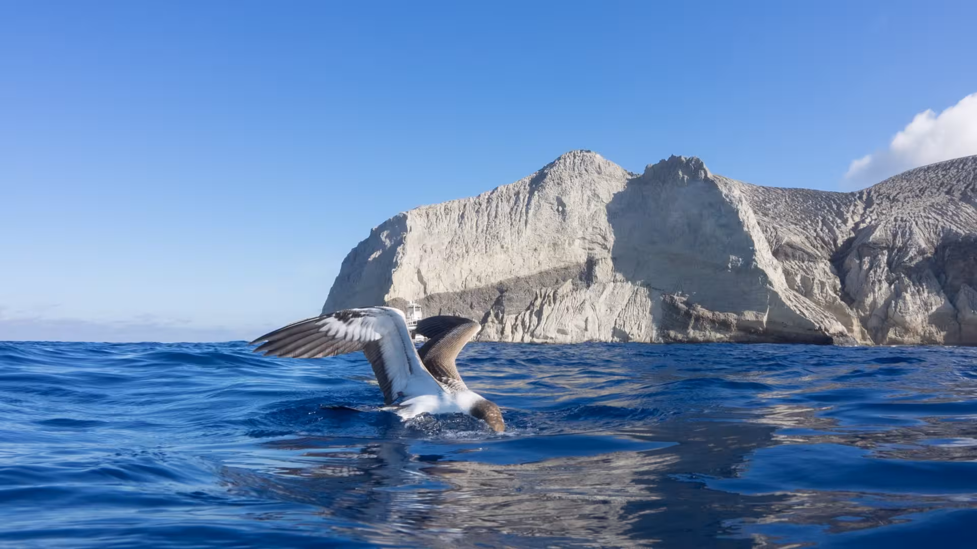 Wie geplant erreichen wir gegen 6 Uhr morgens den Top-Tauchplatz der Revillagigedo-Inseln. Roca Partida ist ein Fliegenschiss im Pazifik und auf Google Maps weder in der Gelände- noch der Satellitenansicht zu erkennen (Bing ist ein bisschen weiter). Die 91 x 45 m kleine Insel ist die Spitze eines unterseeischen Berges und fällt an allen Seiten fast senkrecht bis auf 80 m Tiefe ab. Diese exponierte Lage macht sie zum Anziehungspunkt für allerlei Hochseebewohner. Dazu gehören Haie, Mantas, Delfine, Thune und sonstige Schwarmfischartige, sowie Buckelwale, wobei letztere gerade keine Saison haben. Dafür ist jetzt die richtige Zeit für Walhai-Begegnungen. Wir werden sehen.