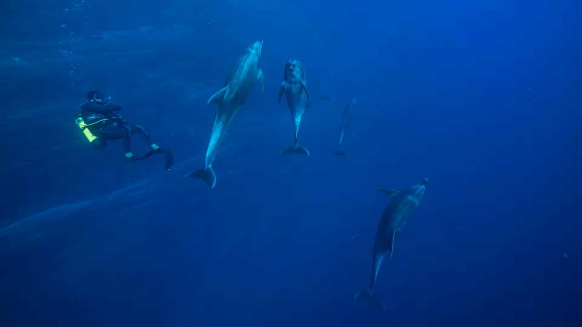 Zum Beispiel am Platz Punta Norte, welcher sich erstaunlicherweise vor der Nordspitze der Insel befindet. "This is Tiger Shark Territory!" verkünden unsere Guides, Ray und Martin, beim Briefing vollmundig. Jaja, mal abwarten. Mit Tigerhaien wird es dann auch nichts, tiertechnisch ähnelt der Tauchgang sehr seinem Vorgänger, sieht man mal von dem Weißspitzenghetto ab, das sich auf einer kleinen Felslichtung gebildet hat, und den drei Großen Tümmlern, die aber nur kurz vorbeistürmen und nicht zum Spielen aufgelegt sind. Insgesamt schon mal ein verheißungsvoller Tag vor San Benedicto.