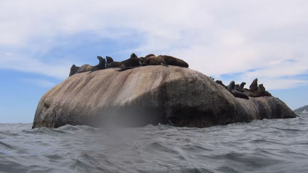 Dieser Platz liegt ebenfalls ein paar Bootsminuten vor Hout Bay. Schon von weitem riecht man, was einen erwartet: Seehunde noch und nöcher. Diese Kerle sind zwar unter Wasser äußerst putzig, stinken aber über Wasser kilometerweit gegen den Wind. Empfindliche Gemüter sollten die Nasenklammern nicht vergessen. Zum Glück kann man ja unter Wasser nicht riechen, sodass man auch hier einen tollen Tauchgang inmitten des Kelps und mit zig Seehunden, die einen aus der Nähe begutachten, hat.