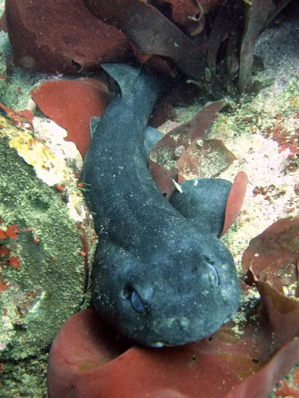 Um die Ecke vom Schlossfelsen liegt die Pyramide. Man muss ein bisschen dorthin schnorcheln, weil der Platz relativ weit vor der Küste liegt. Netterweise zieht uns ein vorbeikommendes Boot im Schlepptau mit, sodass wir einiges an Paddelei sparen. Unter Wasser hat es wieder viel Kelp und tolle Felsformationen. Oft sollen hier auch Haie zu sehen sein und tatsächlich, ein kleiner Shy Shark liegt im Sand und ich mache angestrengt ein paar Aufnahmen, gucke nicht rechts oder links dabei. Als ich fertig bin, wundere ich mich ein wenig über meinen Buddy Christiane, die sich während meiner Fotografiererei ein paar Meter weg in den Kelpwald verzogen hat. Als wir wieder an Land sind, fragt sie mich, ob ich nicht den fetten Bullenhai gesehen habe, der direkt neben mir vorbei ist, als ich fotografiert habe. Ich gucke wie ein Auto, was wohl Antwort genug ist. Wir einigen uns dann noch darauf, dass es wohl in diesen Breiten eher ein Sandtiger als ein Bulle war, was mich nicht wirklich trösten kann, weil ich beides noch nicht gesehen habe. Nach Studium der Literatur bin ich final schließlich der Meinung, dass es ein Siebenkiemenhai gewesen sein muss, für den dieser Tauchplatz bekannt ist und den man nur an ganz wenigen Plätzen auf der Welt als Sporttaucher sehen kann.