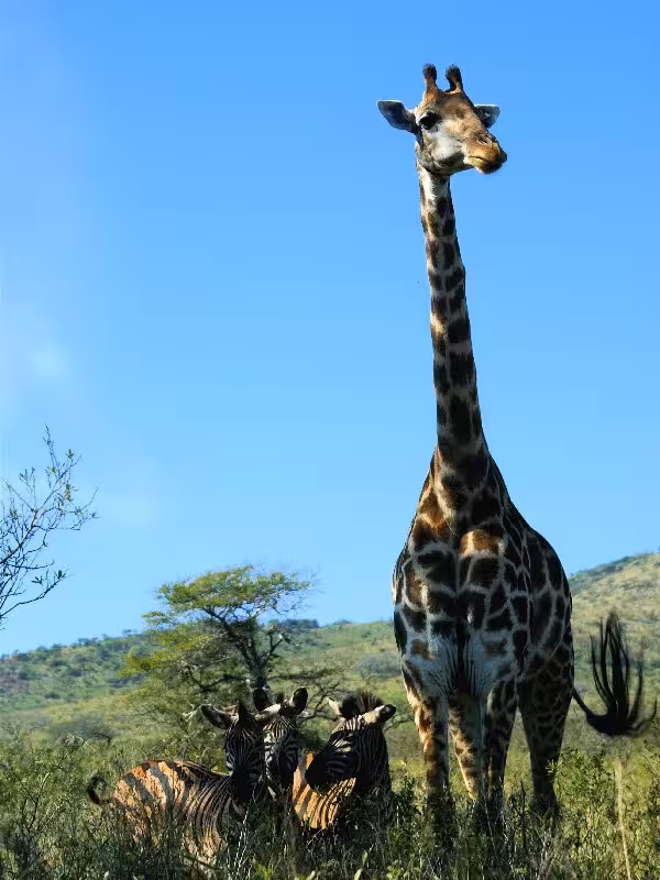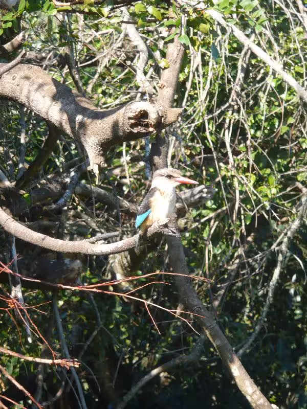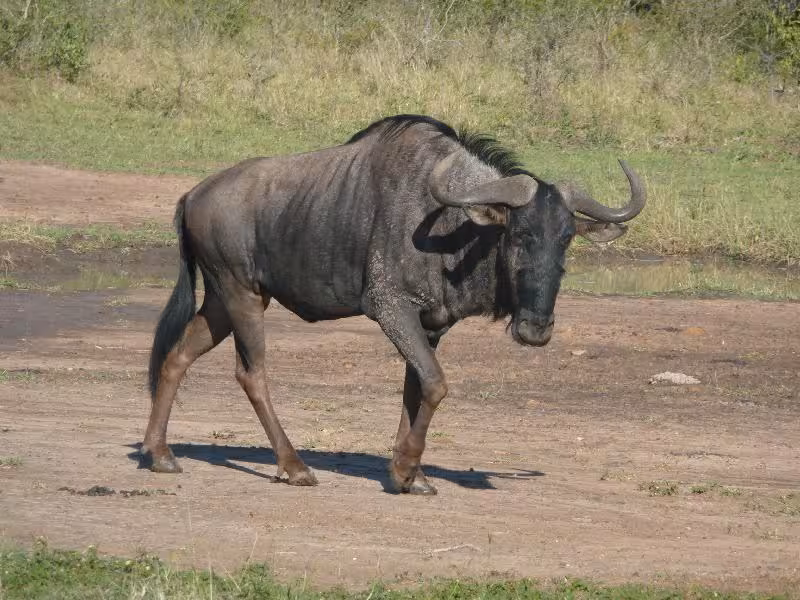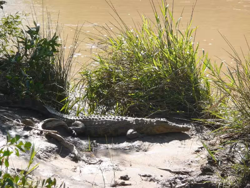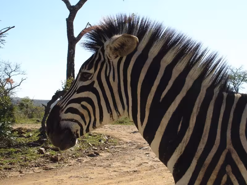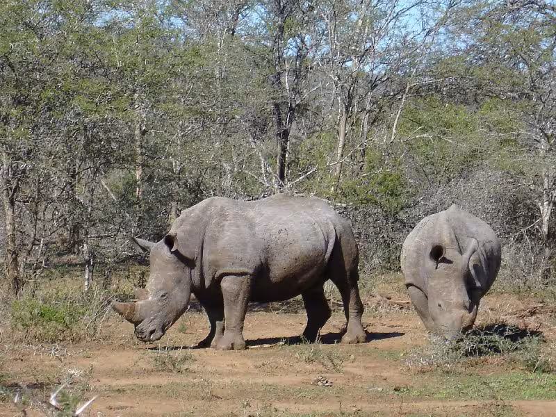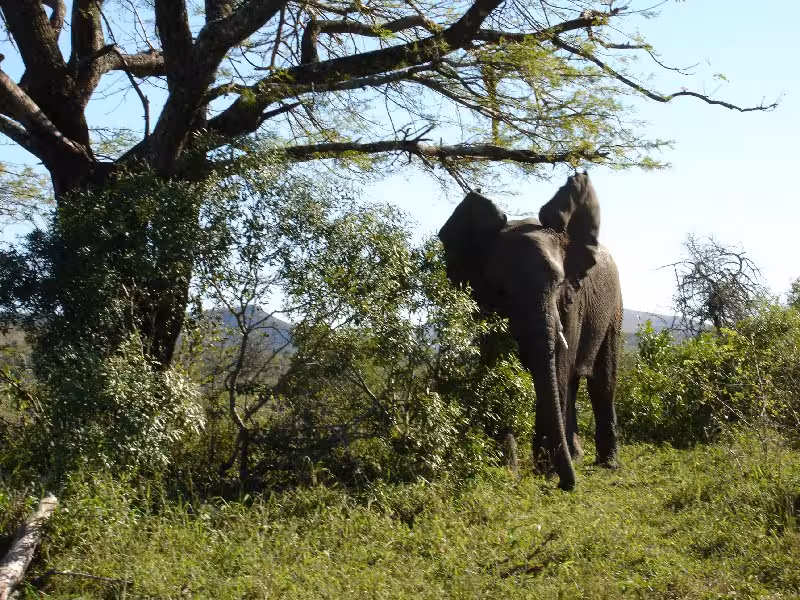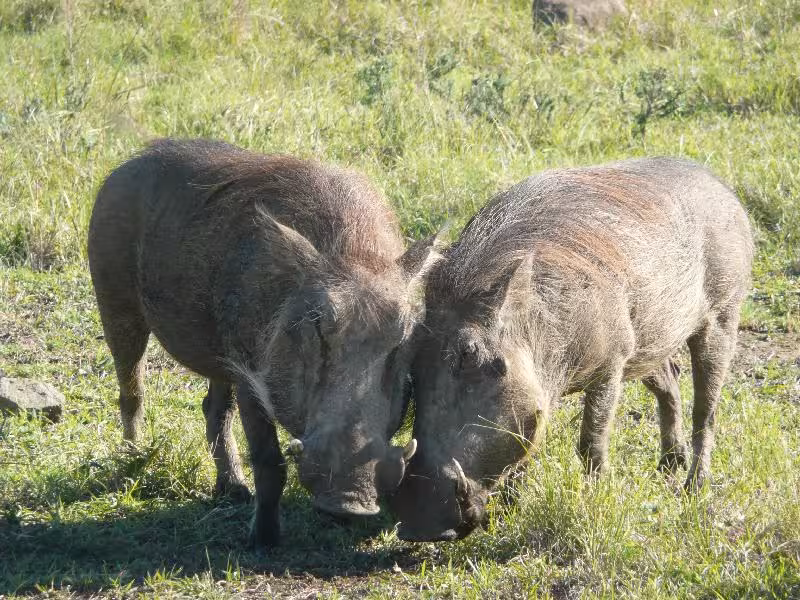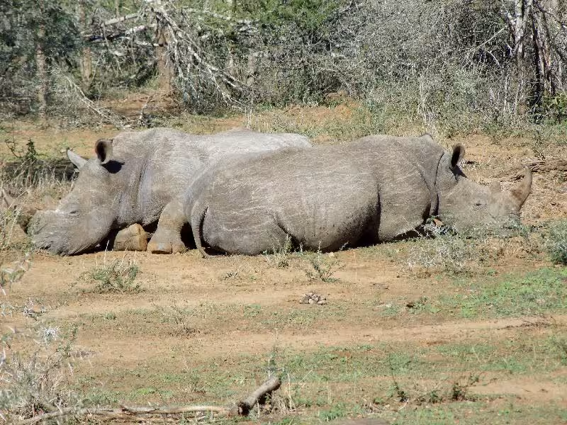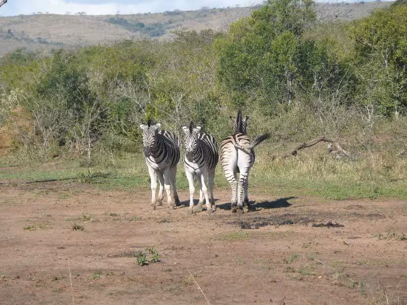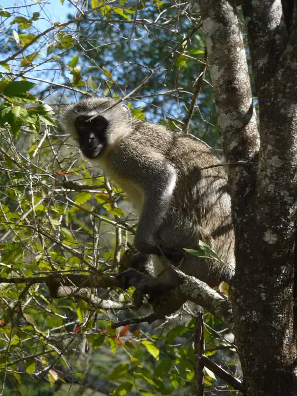 Nachdem wir gestern den Umfolozi-Park abgeklappert haben, nehmen wir uns heute den Hluhluwe-Teil vor. Schon bald macht eine Giraffenherde ihre Aufwartung, unter die sich ein paar Zebras gemischt haben. Meerkatzen sitzen in den Bäumen oder stillen ihren Durst aus vereinzelten Pfützen, die der Regen in den Schlaglöchern der Schotterpisten hinterlassen hat. Wieder treffen wir auf Gnus, Impala-Herden, Warzenschweine und Kaffernbüffel. Elefanten kriegen wir heute nur aus großer Entfernung zu sehen. Dafür hat es sich an einem Wasserlauf ein junges Nilkrokodil gemütlich gemacht. An einem Wasserloch beobachten wir eine junge Giraffe beim Trinken. Stunden dauert es, bis sie sich nach ausgiebiger Erkundung der Umgebung endlich entschließt, den Kopf zu senken und ihren Durst zu stillen, da sie in dieser Position keine Chance hat, evtl. auflauernden Feinden zu entkommen. Wenig später ist es nach dem Elefanten von gestern heute eine Nashornmutter mit ihrem Jungen, die uns an der Weiterfahrt hindert. 20 Minuten lang stehen sie auf der Straße und scheinen unschlüssig zu sein, wie es weitergehen soll. Schließlich verziehen sie sich ins Gebüsch und wir beenden unsere 8-stündige Tour und kehren in die Hluhluwe Lodge zurück, wo wir für morgen noch zwei schnelle Tauchgänge in Sodwana Bay organisieren.