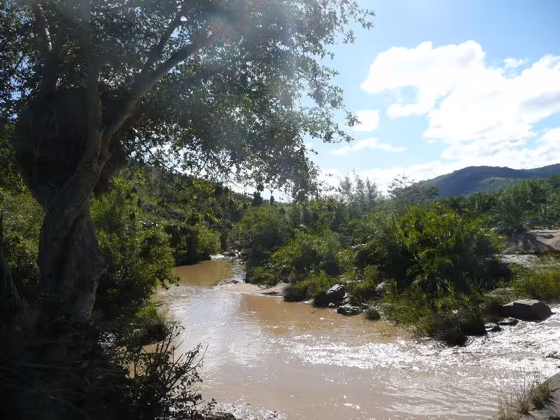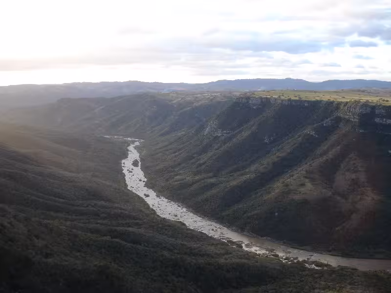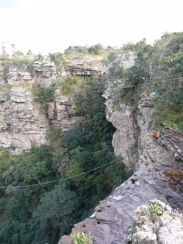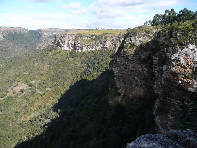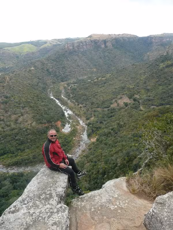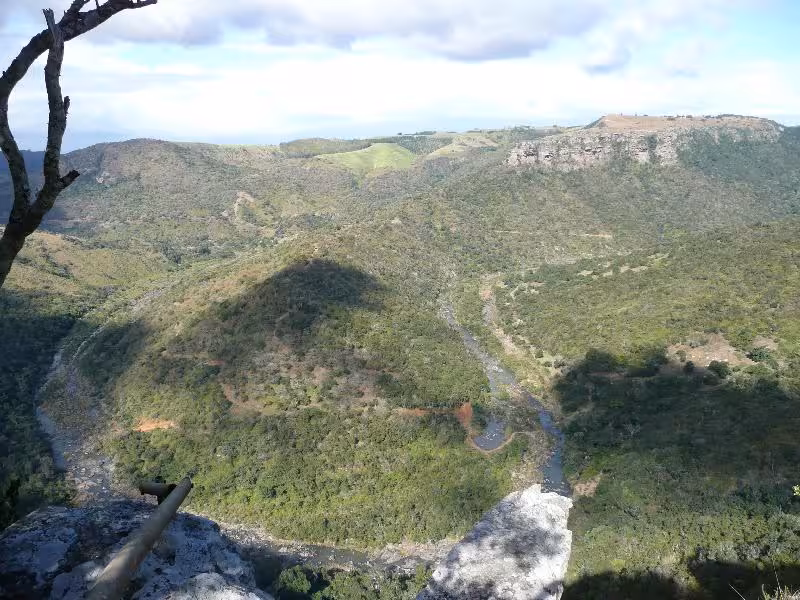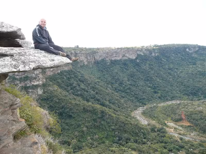 Den unverhofft frei gewordenen Nachmittag füllen wir mit einem Ausflug zum Oribi Gorge. Diese Schlucht, die nur ca. 30 km von Shelly Beach entfernt liegt, sieht aus wie eine Miniaturausgabe des Grand Canyon. Von einigen Aussichtspunkten aus hat man einen imposanten Ausblick auf die vom Umzimkulwana River ausgewaschene Schlucht. Seit neuestem gibt es dort auch eine Anlage, an der man durch tiefes Fallen seinen Adrenalinspiegel in die Höhe schnellen lassen kann. Beim "Wild Swing" hängt man in einem Geschirr, welches an einem Seil hängt, welches wiederum an quer über die Schlucht gespannten Seilen befestigt ist. Zuerst geht es wie beim Bungy 100 m in freiem Fall abwärts, bevor man an dem Seil hin und her über die Schlucht schwingt. Wir haben uns dieses Vergnügen gespart. Dann lieber Bullen- und Tigerhaie, die zerren nicht so an den Nerven.
