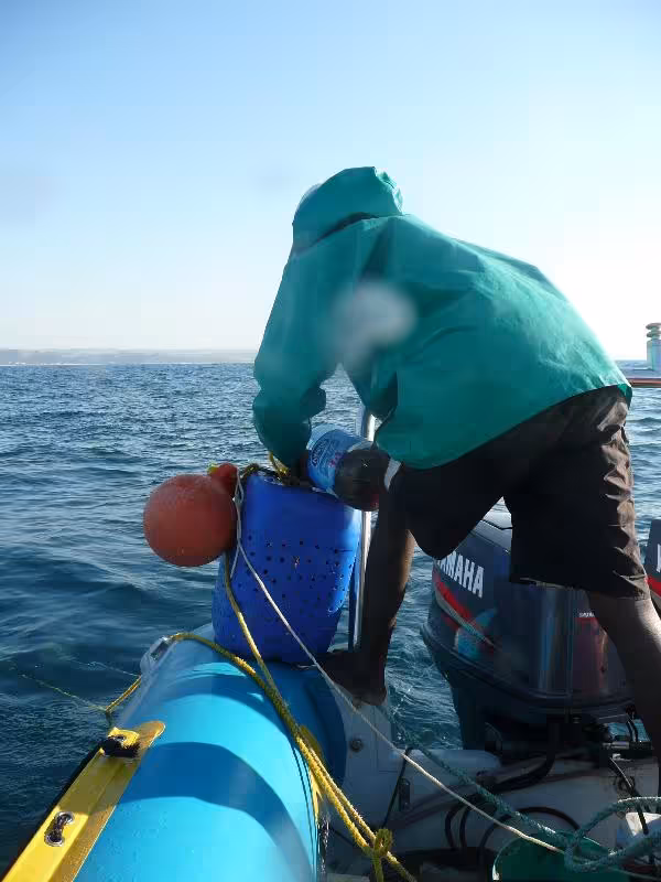 Heute soll auch für mich das Highlight der Tour folgen, neben dem Käfigtauchen in Gansbaai. Früh morgens um 6 Uhr geht es die 100 km Fahrt nach Umkomaas, wo wir mit den Jungs von African Watersports raus zur Aliwal Shoal wollen. Die Firma gehört Walter Bernardi, dem Pionier hier in Sachen Tigerhai-Tauchen. Eine Basis im eigentlichen Sinne gibt es nicht, man trifft sich im Gästehaus, um von dort mit dem Jeep runter zum Strand zu fahren, das Gummiboot im Schlepptau. Draußen auf dem Wasser wird erstmal wie bei Roland Mauz eine Ködertonne ins Wasser gelassen, mit der die Haie angelockt werden. Sind sie da, wird diese Tonne jedoch gegen eine Waschtrommel ausgetauscht, in der sich Fischköpfe und ähnliche schmackhafte Delikatessen befinden. Die Haie werden also in der Tat gefüttert, weswegen sie da bleiben, wenn die Taucher ins Wasser gehen und sich nicht direkt verabschieden. Während die Ködertonne im Wasser hängt und wir auf die Ankunft der Haie warten, bekommen wir ein ausführliches Sicherheitsbriefing, was wir zu tun und was wir zu lassen haben:
