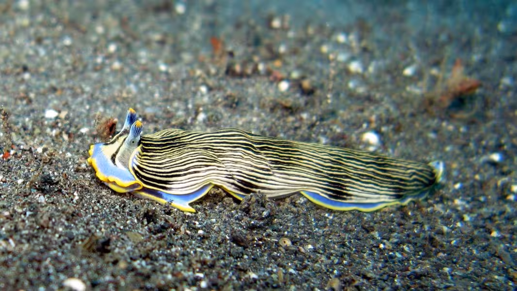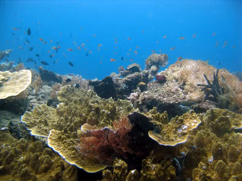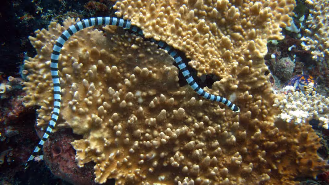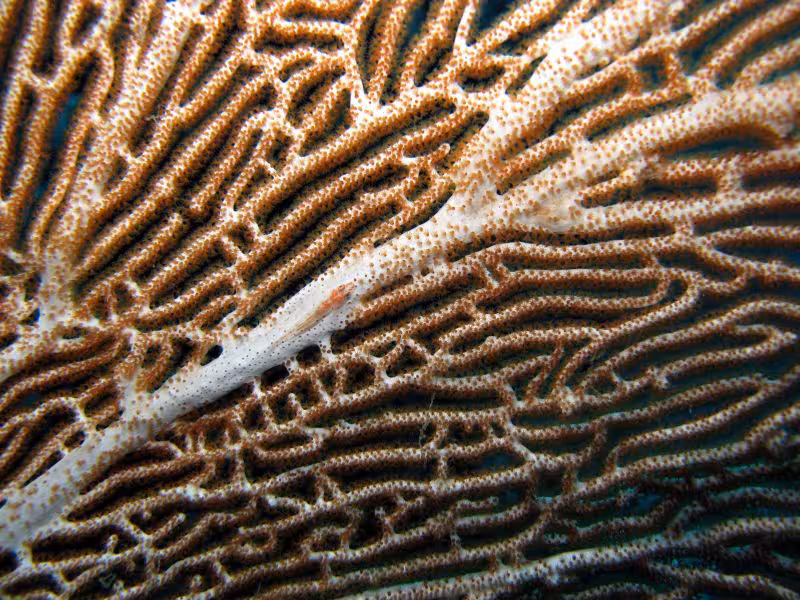 Schön ist auch Cedu's Wall, wenn die Sicht auch so beschissen ist, dass man die Hand kaum vor Augen sieht. Ok, 15 m wird es schon haben, aber gefühlt ist das ja gar nichts im Vergleich zu dem 25-30 m, die es an den anderen Plätzen hatte. Die Wand präsentiert sich als Kleinviehplatz, im Wesentlichen finden wir Schnecken und Shrimps – und natürlich wieder ein paar Pygmys. Für eine willkommene Abwechslung sorgt da kurz vor Tauchgangsende eine Seekobra, die unsere Anwesenheit ignorierend übers Riff streift und ihre Nase auf der Suche nach Fressbarem unter praktisch jede Koralle steckt.