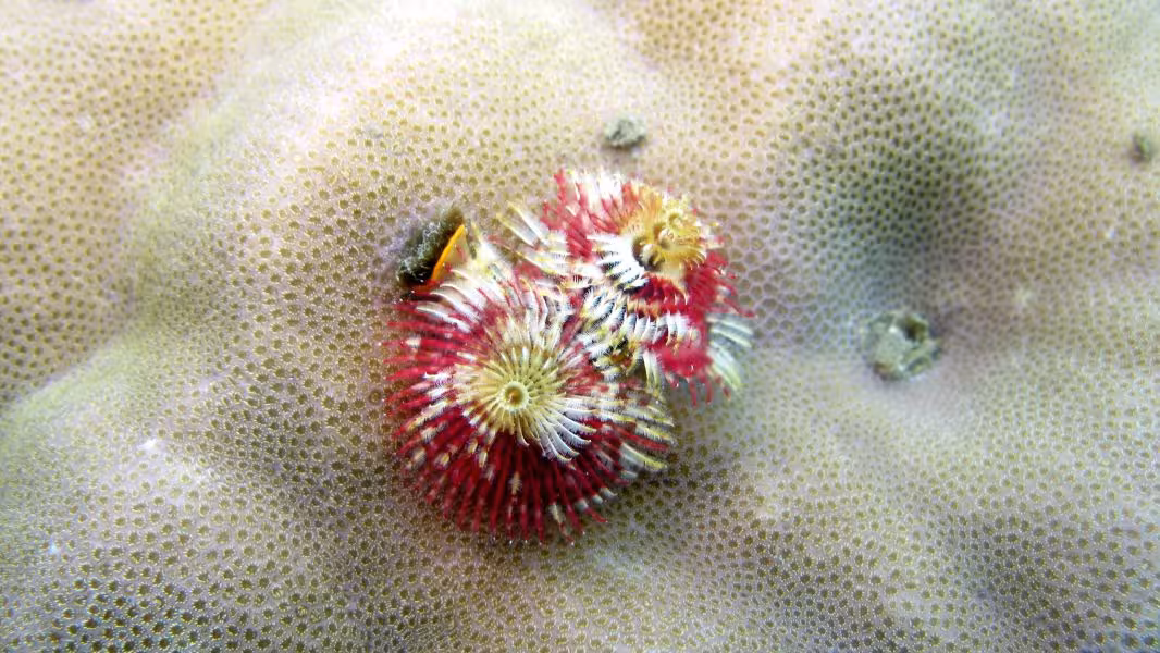 Der Heiligabend startet mitten in der Nacht mit der achtstündigen Überfahrt nach Misool, ganz im Süden des Inselreichs gelegen. Die zerklüfteten Sandsteininseln erinnern mich entfernt an die Pilzinseln Palaus. Nur war da das Wetter besser, der graue, stürmische Himmel hier erinnert mehr an die heimische Nordsee. Das gilt zum Glück nicht für Misools Unterwasserwelt, deren Erkundung wir an der Ostspitze von Whale Rock II starten. Beim Sprung ins Wasser bekommen wir direkt eine Widrigkeit von Raja Ampats Gewässern zu spüren: Die Strömung ist oft unberechenbar und kann sich von einer Sekunde auf die andere beliebig ändern, sowohl in Richtung als auch Stärke. Die anfangs noch moderate Strömung frischt auf einmal derart auf, dass unser Tauchgrüppchen gesprengt wird: Während es die eine Hälfte unter Zuhilfenahme von maximalem Flossenschlag und Festkrallen an den Felsen noch um die Spitze herum auf die Nordseite des Walfelsens schafft, wo die geplante Tauchroute verläuft, wird die andere Hälfte auf die Südseite geweht. Schlimm ist das nicht, sofern man sich an die Marschroute hält und direkt auftaucht, wenn man abgetrieben wird, denn die Mandarin Siren hat ja eine fitte Crew. Das Schlauchboot sammelt einen dann schon wieder ein und bringt einen auf den rechten Weg zurück. Wiedervereint geht es an der brilliant bewachsenen Steilwand entlang, wo man hinschaut Gorgonien, Anemonen und Korallen, auf denen Unmengen Federsterne hocken. Alles bunt in bunt, von Korallenbleiche ist nichts zu sehen. Haufenweise Juwelen- und andere Zackenbarsche schwimmen herum, eine Kröte knuspert genüsslich an einer Koralle und ein Barramundi verkriecht sich bei unserer Annäherung ängstlich in einem Loch. Wahrscheinlich ahnt er, dass ich ihn seit meinem Australien-Aufenthalt vor 10 Jahren auch durchaus gerne mit etwas Zitrone verfeinert in einer Bratpfanne sähe, Barramundi ist in Australien ein sehr beliebter, weil wohlschmeckender Speisefisch. Zu seinem großen Vergnügen darf der hier aber noch ein bisschen weiterleben.