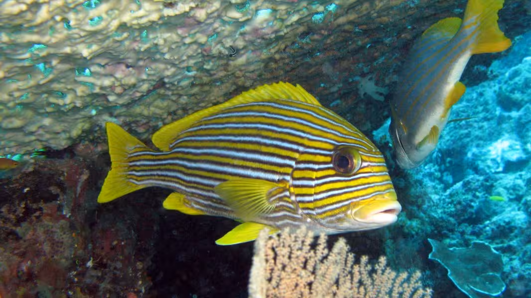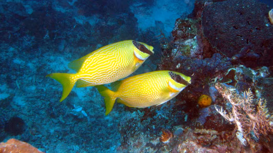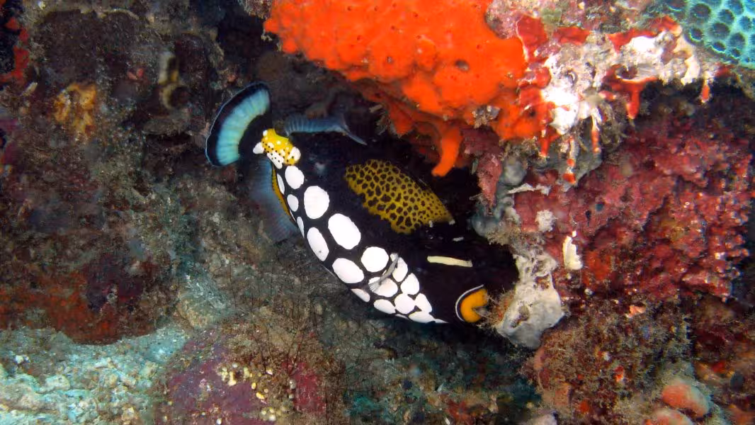 Es ist bereits 8 Uhr, als ich etwas (schlaf)trunken den Salon betrete. Auf dem Deck ist außer Detlevs und meiner weit und breit keine Tauchausrüstung zu sehen. Sind die Kollegen also offensichtlich ohne uns zu wecken in den Tauchtag gestartet, was mir gleich mal etwas die Laune verdirbt. Einen anständigen Weckdienst kann man ja wohl erwarten, wenn man direkt neben dem Maschinenraum schläft. Ohne Ohrenstöpsel ist da kaum Ruhe zu finden, gleichzeitig verhindern die aber auch, dass man ein zaghaftes Klopfen an der Zimmertür hört. Warum es auf der Mandarin Siren keine durch Mark und Bein gehende Schiffsglocke gibt, wie auf anderen Safaribooten, ist mir ein Rätsel. So geht es heute erst um 11.30 Uhr am Black Rock zum ersten Mal ins Wasser. Der schwarze Felsen liegt inmitten einer großen Bucht, steil geht es auf drei Seiten in die Tiefe. Auf der Westseite ragt ein Plateau wie ein Finger ins Meer hinaus. Dort starten wir unseren Tauchgang und schauen den Schwarzen Schnappern zu, die sich in unseren Luftblasen suhlen. Die große Tischkoralle hat schon bessere Zeiten gesehen, was auch für den Rest der Korallen am Black Rock gilt. Lediglich auf der Südseite und direkt unter dem Überhang, den die Wellen in Jahrtausende langer Arbeit rund um den Felsen aus dem Kalkstein gehauen hat, findet man es etwas bunter vor.