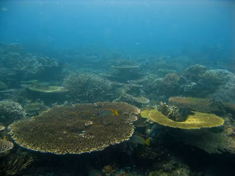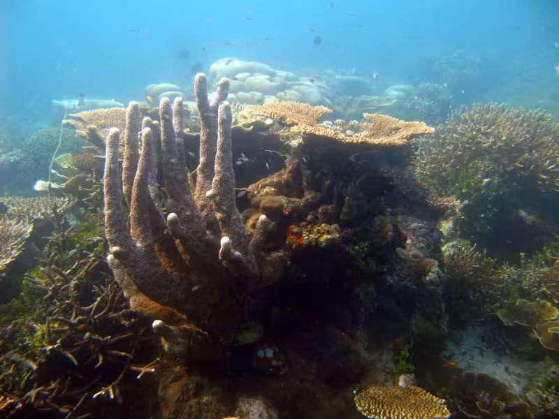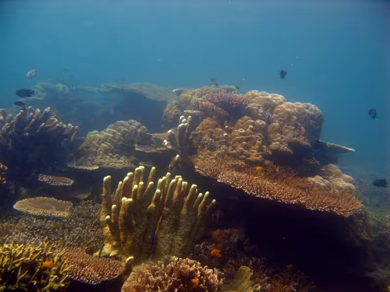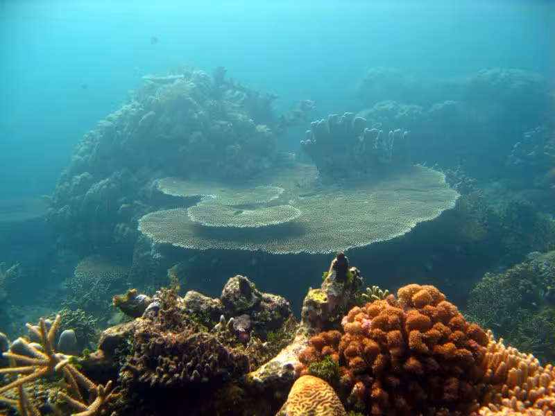 Unser zweiter Platz heute heißt Happy Ending Rocks und schließt sich direkt an Happy Ending an. Auch hier ist Muck Diving bei mieser Sicht angesagt, aber im Gegensatz zu seinem Vorgänger gibt es hier im Flachwasserbereich auch durchaus tolle Korallen zu bestaunen. Vor allem Tischkorallen haben sich breit gemacht, um die viel bunter Rifffisch herumschwirrt. Zurück über Wasser präsentiert sich der Himmel inzwischen Grau in Grau, von Tropensonne ist nicht mehr viel zu sehen. Auch die Vorhersage für die nächsten Tage ist nicht sehr vielversprechend, aber was soll's, immerhin ist der Regen 30 Grad wärmer als daheim.