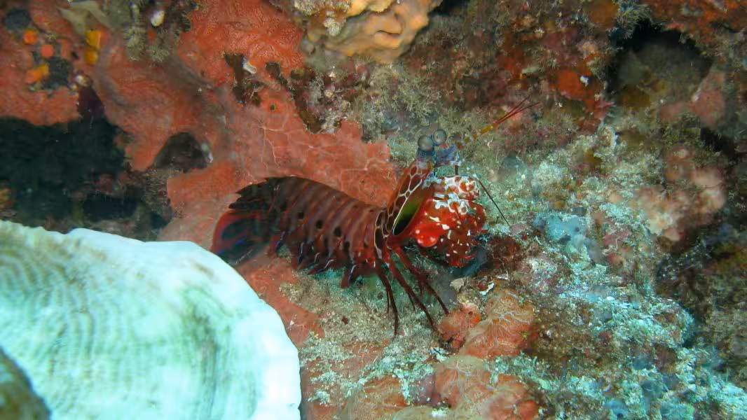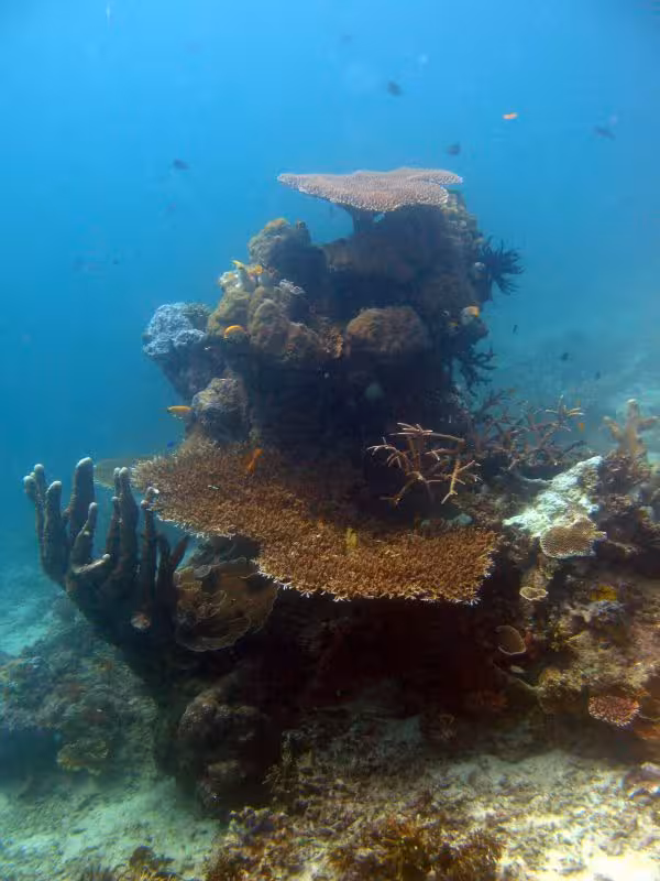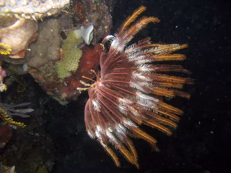 Abends steht "Exploration Dive" an, wir springen an einem bisher nicht betauchten Felsen ins Wasser, um zu schauen, ob sich daraus vielleicht ein richtiger Tauchplatz machen ließe. Der Tauchgang startet auch super, die Lichtkegel unserer Lampen durchschneiden das pechschwarze Wasser und enthüllen eine farbenfrohe, zerklüftete Steilwand, die sogar mit einem "Swimthrough" (einem Loch zum Durchschwimmen) ausgestattet ist. In der 2. Hälfte des Tauchgangs ändert sich jedoch das Bild, überall stehen Salat- und Geweihkorallen. Leider jedoch nur oberhalb von 15 m, darunter steht nicht mehr viel, es sieht aus, als wäre Kyrill hier durchgewütet. Oder wurde da doch etwas mit Dynamit nachgeholfen? Man weiß es nicht. Immerhin suchen in dem ganzen Korallenbruch viele Kleinfische einen sicheren Unterschlupf vor ihren Feinden, die ihnen in der Nacht nach dem Leben trachten. So bieten sich auch hier noch ausreichend Fotomotive. Deirdre ist jedenfalls der Meinung, dass man hier durchaus zukünftig einen regulären Tauchstopp einlegen kann und so dürfen wir dem Platz einen Namen geben. Lisa erinnert die Korallenszenerie sehr an Broccoli und Blumenkohl und so wird ihr Vorschlag Romanesco einstimmig angenommen.