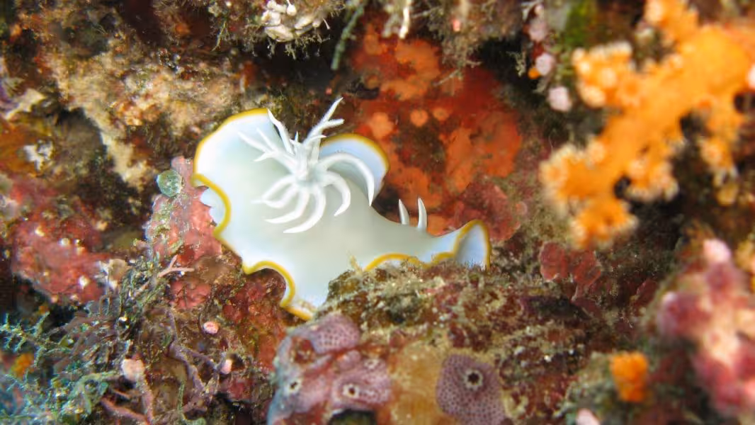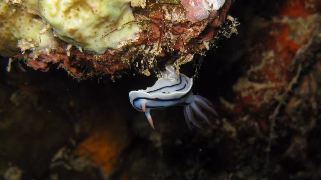 Nach dem Nachmittagstauchgang an Mammer setzt bei mir langsam die Schreibfaulheit ein: "Well, a wall again. Fish everywhere." ist alles, was ich in meinem Logbuch notiere. Erwähnenswert sind noch die "schooling Nudibranches", ein Schwarm weißer Nacktschnecken krabbelt im Kollektiv auf den Korallen umher.