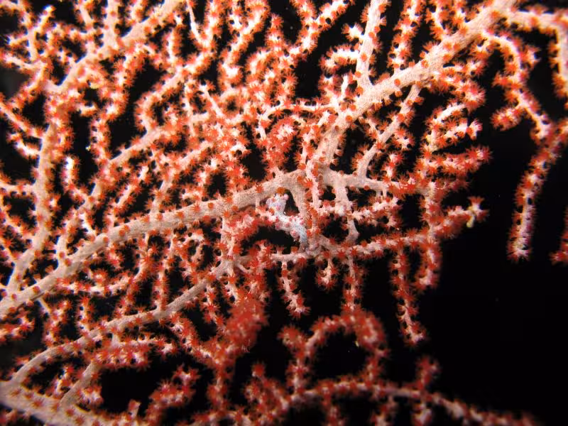 Am späten Nachmittag heißt es erneut "Exploration Dive", diesmal jedoch als Dämmerungs- nicht als Nachttauchgang. Direkt gegenüber unserem Ankerplatz schmeißen wir uns an einer unbekannten, senkrecht abfallenden Steilwand ins Wasser. Die Korallen hier sind nicht der Rede wert, nur vereinzelt wachsen ein paar kleine Gorgonien an der Wand. Die vielen Nacktschnecken sind relativ rasch abgelichtet. Um die aufkommende Langeweile zu bekämpfen, fange ich an, in den Gorgonien nach Pygmäenseepferdchen zu suchen. Lange muss ich auch nicht suchen, ein Bargibanti hat sich in einer der Gorgonien ein Zuhause gesucht. Nachdem die Suchmission erfüllt ist, bleibt noch das Ablichten der in den Drahtkorallen heimischen Gobys, bevor sich auch Tauchtag 3 dem Ende neigt.