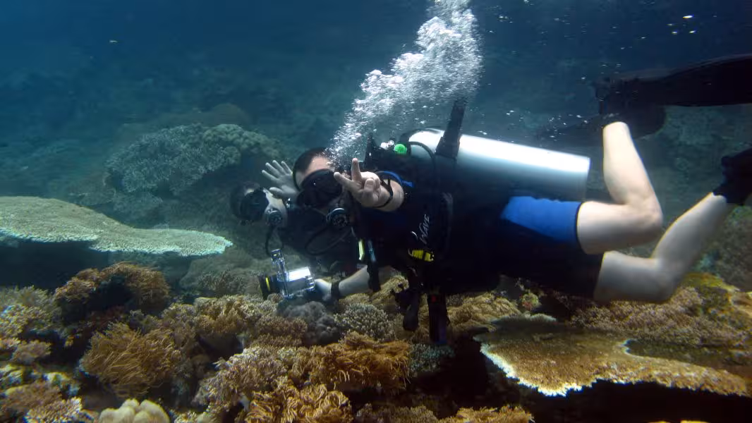 90 Minuten später und ein paar Meter weiter bietet sich uns an Bitbatiem Kecil ein ähnliches Bild: eine tolle Steilwand mit Tonnen von Fisch und einem wunderbaren Korallengarten auf dem Riffdach. Wirklich außergewöhnliches Fischgetier ist zwar nicht dabei, aber das allgemeine Ambiente verbreitet schon gute Laune. Für die sorgt auch Deirdre mit immer neuen, mehr oder weniger absurden Geschichten aus ihrem abwechslungsreichen Leben – und mit ihren künstlerischen Fähigkeiten natürlich.