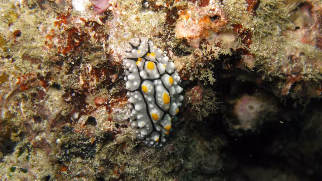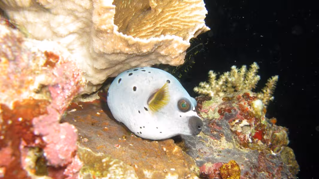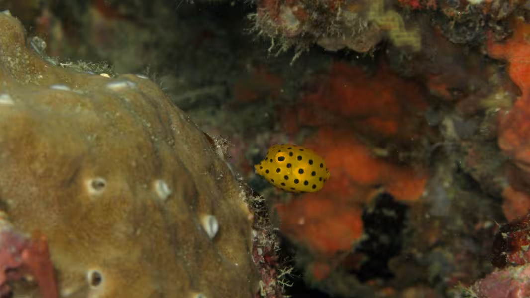 Wir haben mit der Strömung am Eagle's Nest noch eine Rechnung offen und entschließen uns daher, den heutigen Dämmerungstauchgang nochmal hier zu versuchen. Allerdings haben wir da die Rechnung ohne die Strömung gemacht, die macht nämlich wie schon heute Morgen, was sie will. Erst von hinten, dann von vorne, dann doch wieder andersrum, 3x wechselt die Richtung während des Tauchgangs, sodass wir etwas orientierunglos am Hang hin- und herpendeln. Abgesehen von dieser Laune der Natur, ein paar Schnecken und einem kleinen, gelben, allerliebsten Baby-Kofferfisch gibt es von diesem Tauchgang nichts zu berichten.