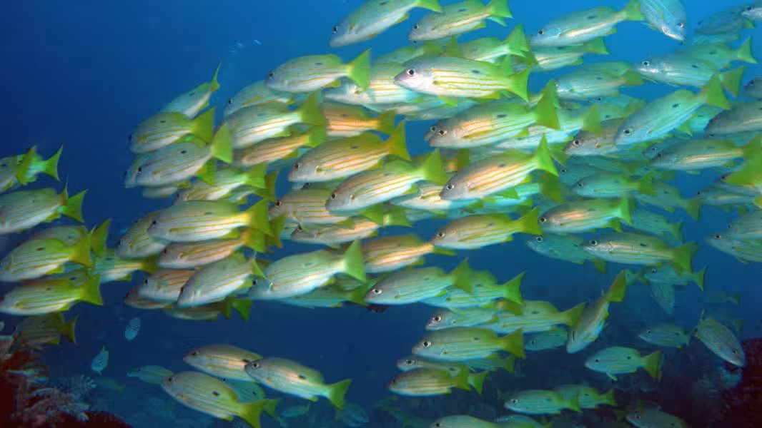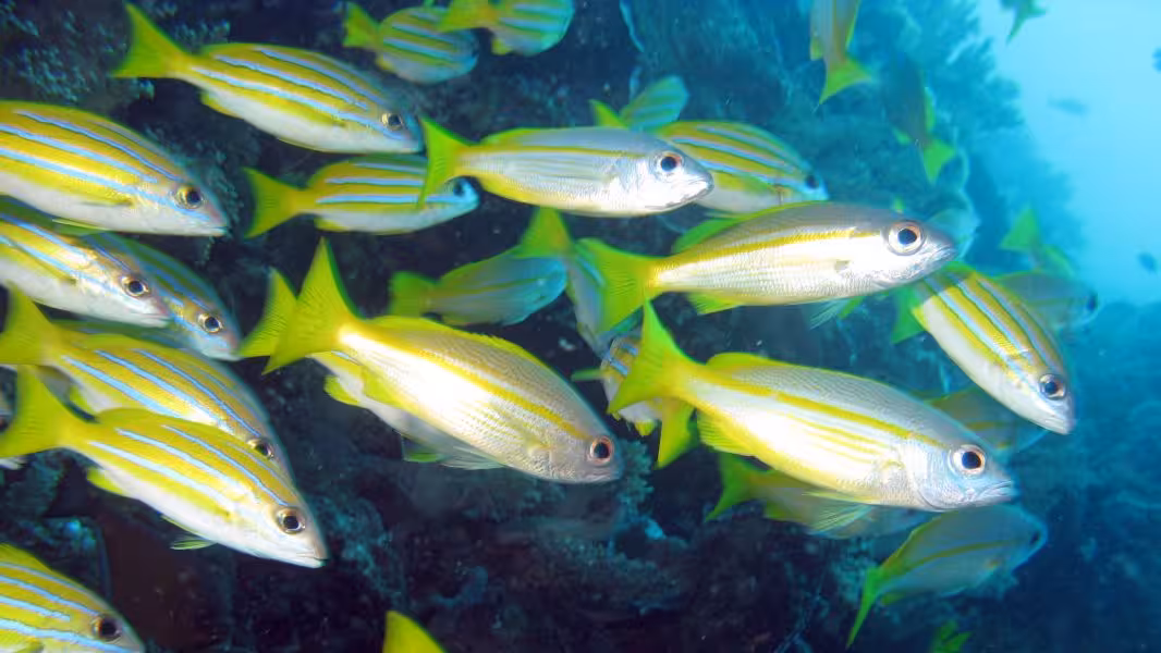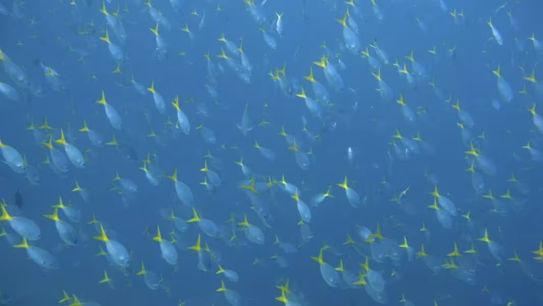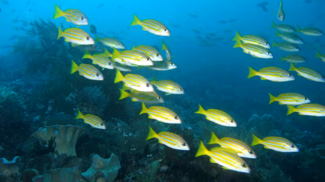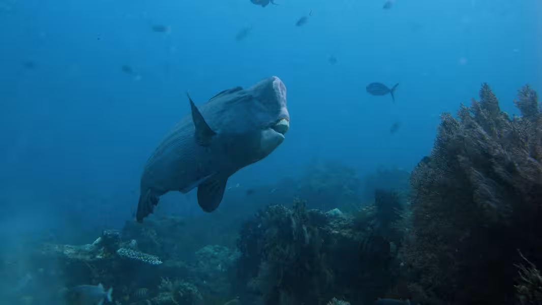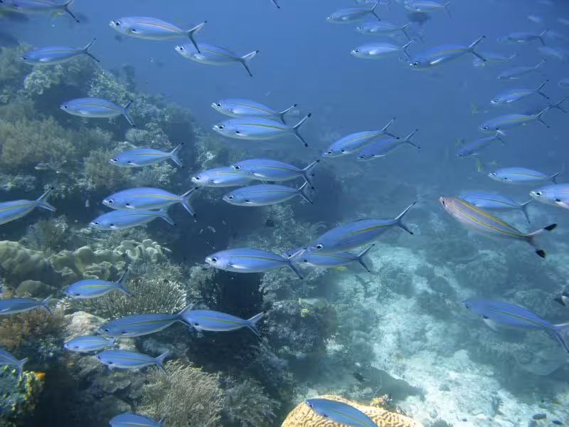 Gut weiter geht es auch an Sardine, einem frei stehenden Plateau 4 km nördlich von Kri, ähnlich Mayhem von vorgestern. Der Platz hat seinen Namen von den riesigen Fischschwärmen, die hier oft zu beobachten sind. Leider hat der Namensgeber dabei aber Sardinen mit Sardellen verwechselt. Über solche Details sehen wir großzügig hinweg und springen trotzdem ins Wasser. Die Sardellen sind auch zur Stelle, genauso wie Schnapper, Füsiliere, Rochen, Büffelkopf-Papageien, Drücker, Stachelmakrelen, usw. usw. Nichts, was man nicht schon gesehen hätte, aber die Masse macht's.