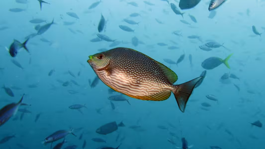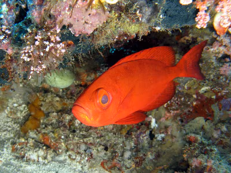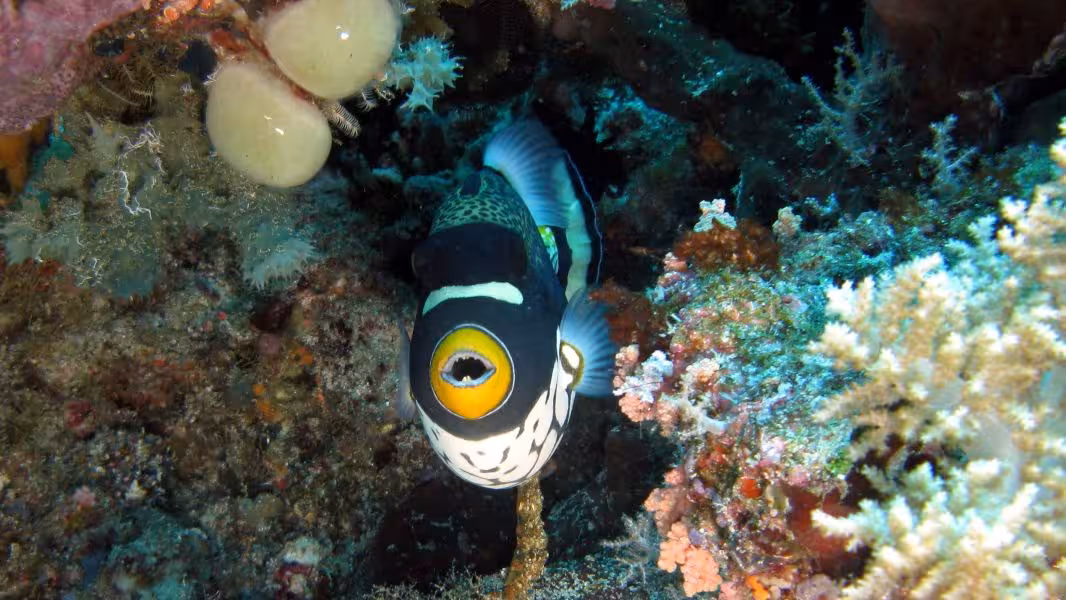 Video: Krötenfisch nachts an "Roland's Woho" [00:42 Min.]Den Anfang vom Jahresende macht Cape Kri, einem der berühmt-berüchtigsten Plätze im nördlichen Raja Ampat. Die Strömung ist hier oft unberechenbar und macht, was sie will. Heute ist sie handzahm und erlaubt uns einen leichten Drift-Tauchgang an der Wand entlang, die voll mit Fisch ist. Wo man auch hinguckt, bewegt sich was, im Blauwasser stehen Schwärme von Stachelmakrelen und Füsilieren, am Riff hängen Kleingruppen von Süßlippen ab. Mit nachlassender Strömung lässt auch etwas das Leben nach, aber gegen Ende des einstündigen Unterwasser-Aufenthalts fliegt noch ein Mobula vorbei, der leider etwas scheu auf Distanz bleibt. Früh am Morgen war das schon mal ein guter Start in den Silvesterabend.