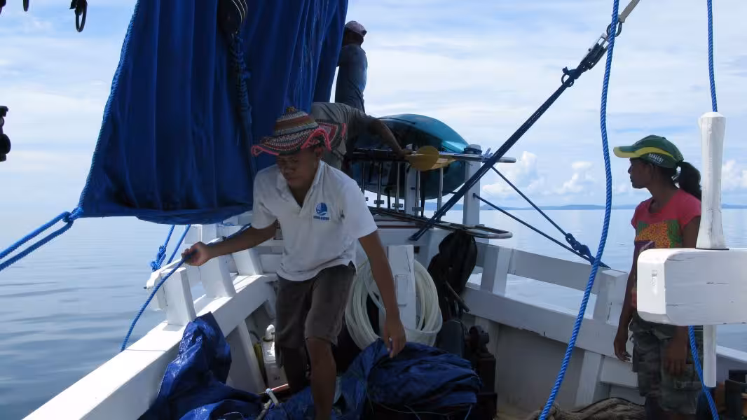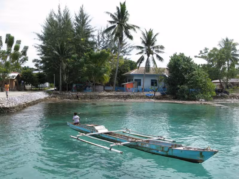 Die darauffolgenden Neuigkeiten sind weniger erfreulich, die Pumpe der Wasseraufbereitungsanlage hat den Geist aufgegeben. Nach der gestern ausgefallenen Klospülung in Detlevs und meiner Kabine ist dies das 2. technische Problem. Die Klospülung war schnell repariert und nicht kritisch, wie in Asien allgemein üblich, kippt man dann einfach einen Eimer Wasser obendrauf. Die Reparatur der Pumpe erweist sich jedoch als nicht so einfach, wir benötigen ein Ersatzteil und steuern zum Auftreiben desselbigen eine wenig heimelige Insel in der Nähe an. Der Stopp dauert rund eine Stunde. Anschließend sind wir genauso weit wie vorher, denn leider lässt sich das Ersatzteil nicht auftreiben. Drei Tage ohne frisches Wasser ist Scheiße, deshalb steuern wir die nächste bewohnte Insel an und füllen die Süßwassertanks manuell auf. Hierzu kommen kilometerlange Gartenschläuche zum Einsatz, von denen ich hoffe, dass sie nicht an den Wasserhahn im Gästeklo des Hafenmeisters angeschlossen sind, mit dem ich während unseres zweistündigen Zwangsstopps ein unterhaltsames Pläuschchen am Pier führe.