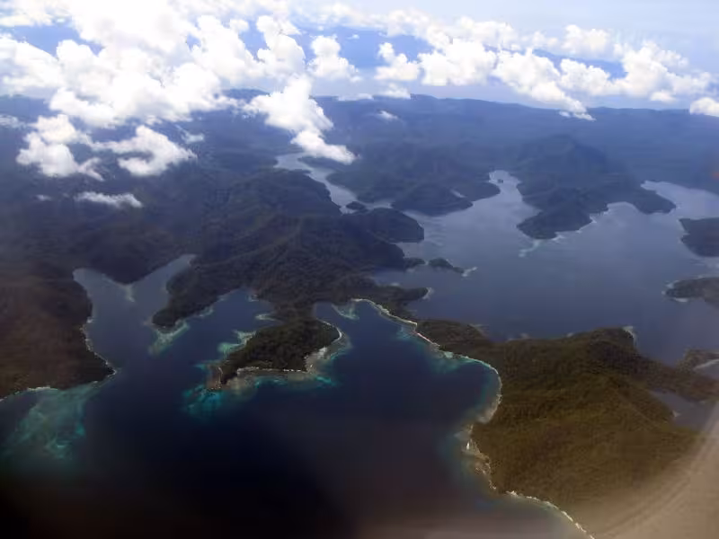 Nach dem Abheben des Lion Air-Fliegers, der um Klassen besser ist als die Merpati-Schrottmühle, mit der wir angekommen sind, können wir nochmal von oben den fantastischen Ausblick auf die Inselwelt Raja Ampats genießen. Über Halmahera geht es nach Manado und dann weiter nach Surabaya, wo ich mich empfehle, den Kollegen einen angenehmen Heimflug wünsche, und flugs Richtung Insel der Götter verabschiede.